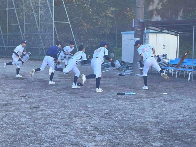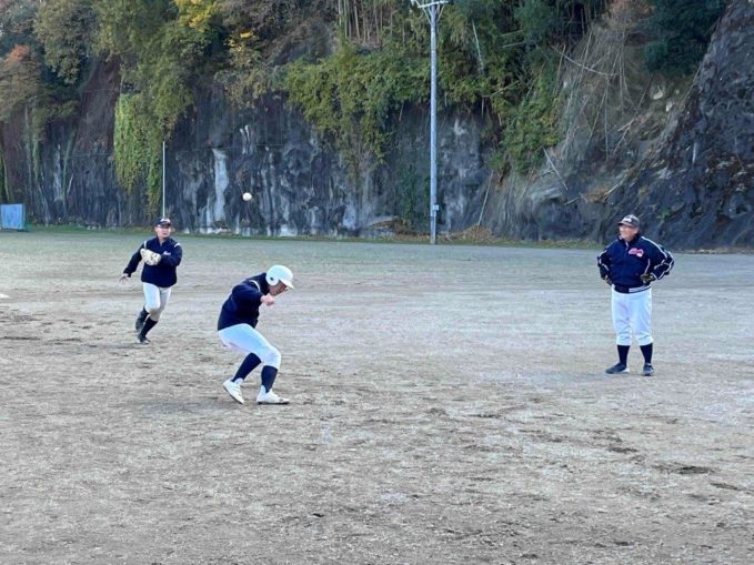 本日は2か所での練習を行いました。前半のいつもの赤城グラウンド。練習試合に向けて基礎体力アップのトレーニングは軽めに終えて、キャッチボールや守備練習やペッパー、バント練習を多めに行いました。守備練習では前回に続いて基本的な約束事の確認を行いました。ペッパーではバットのトップの重さを意識したバットコントロール、バントは基本的な構えとコントロール方法について学びました。後半は前橋のFirst様に移動。マシンでのバッティング練習と屋内マウンドでのピッチングチェックを行いました。これまで基礎トレばかりのため、初めて塾生の打球やピッチングを見学させてもらいましたが、皆さん下半身をしっかりと使った打球でしたし投球をしていました。