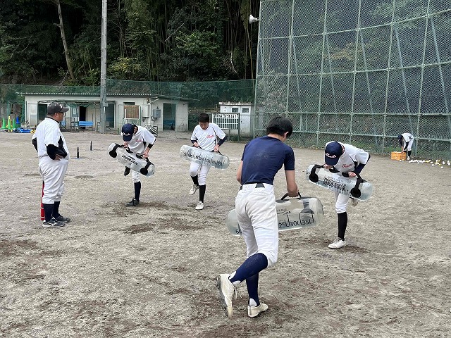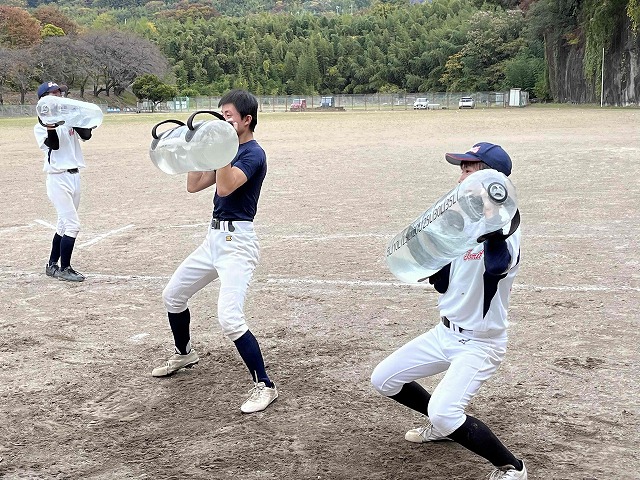 また、新たにウォーターバッグを使った練習が追加されました。20kgのバッグを持ち上げてのスクワット、ランジ、ステップなどの練習を行いました。水を20kg超で入れた子もいてバッグを途中から持ち上げられなくなり、苦悶の表情をしながらも歯を食いしばって何とかプログラムをこなしていました。今回は少し負荷が大きすぎたかもしれませんが、この練習を通してしっかりと下半身強化していって欲しいです。