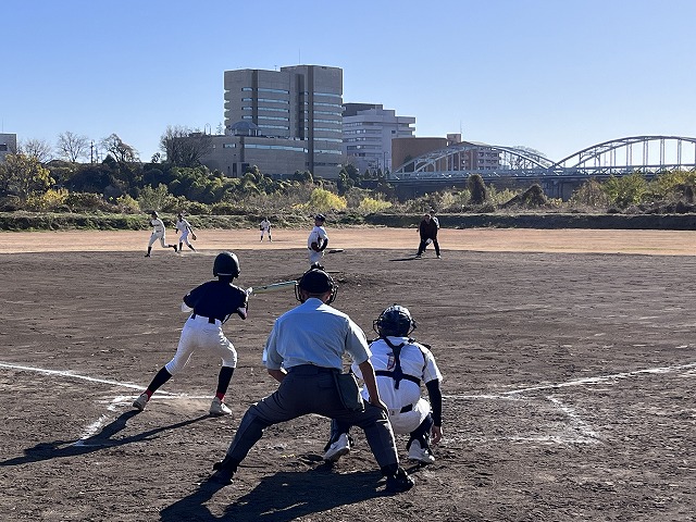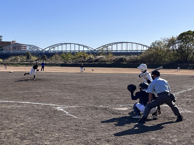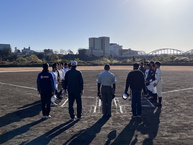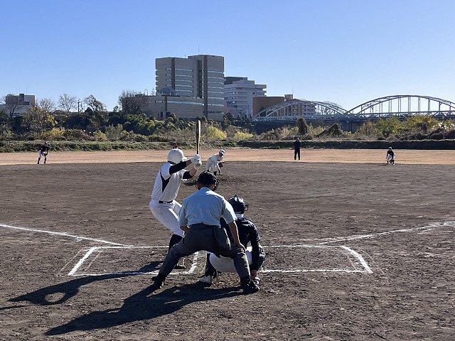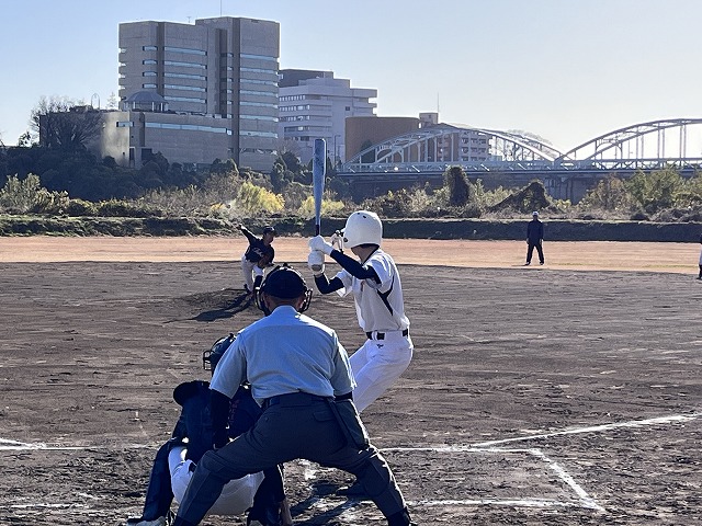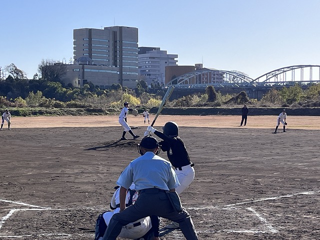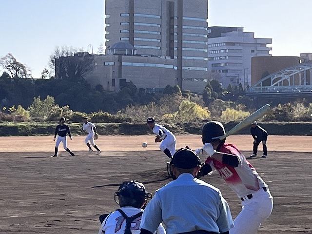 今期初めての練習試合をFirst様と行いました。メンバー数ギリギリのため心配しましたが、塾生皆参加で季節外れの暖かい晴天下で実施できました。
