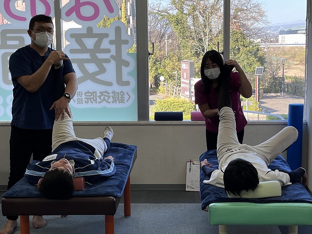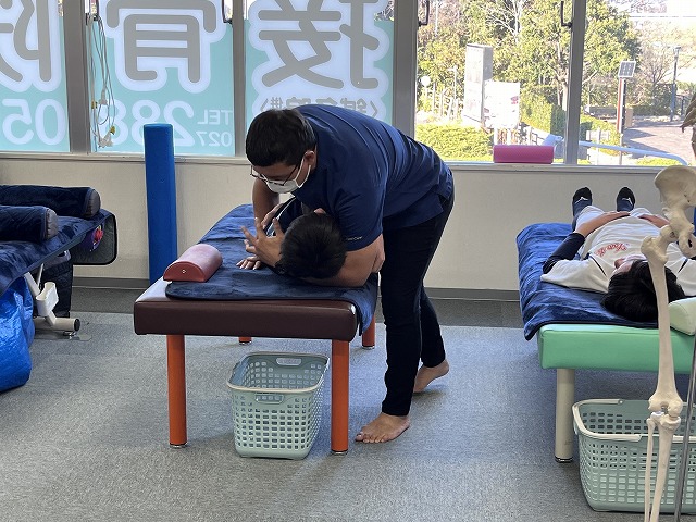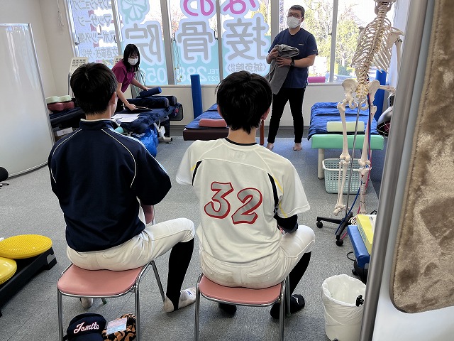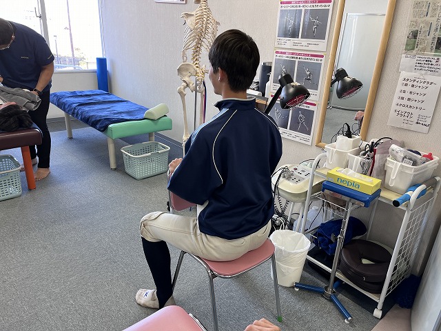 午後からは「なお接骨院」様にてボディケアの簡単な講習と今の状態を確認していただきました。体のバランスチェックとひじ肩の張り具合を確認していただきました。肩の内旋ストレッチで日頃の張りのケア方法を学ぶなど大変勉強になりました。「 なお接骨院 」様、ありがとうございました。