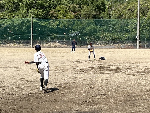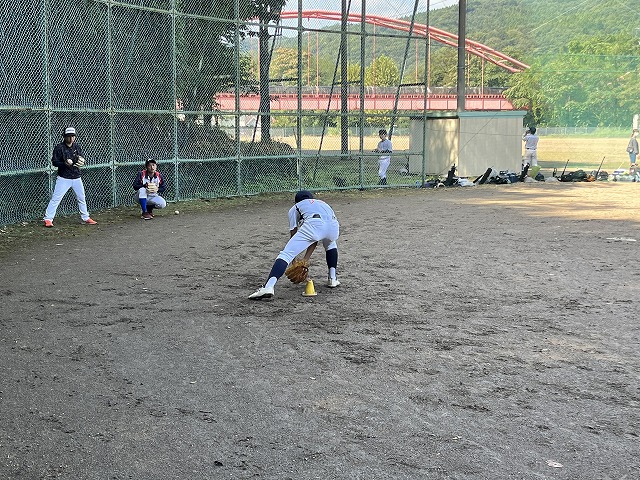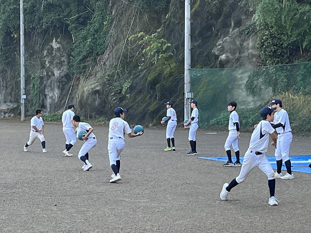 コーチ&監督がいらっしゃる練習2時間前に集合し、道具出しと事前アップ。