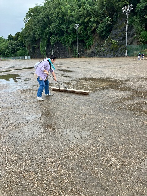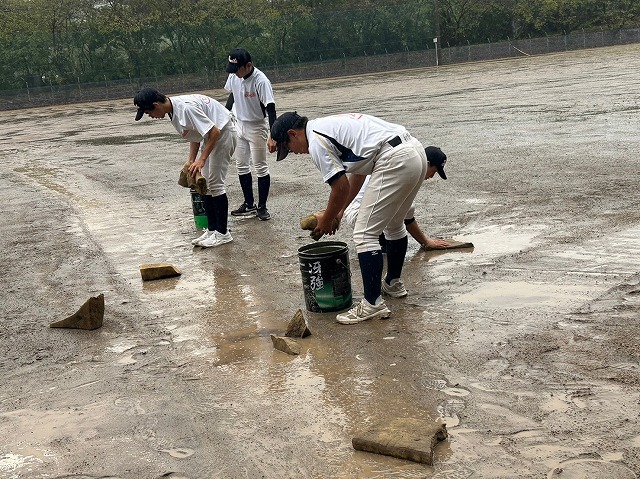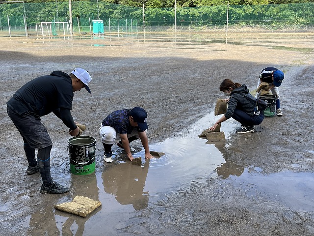 昨晩から降った雨のために水が浮きまくった状態のあいにくのグラウンドコンディション。