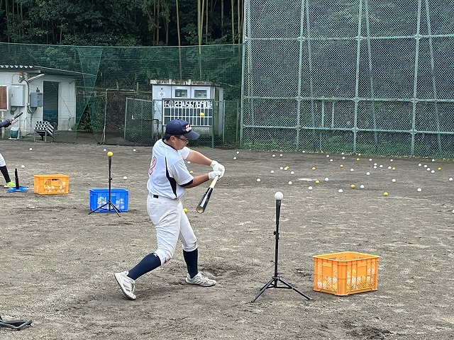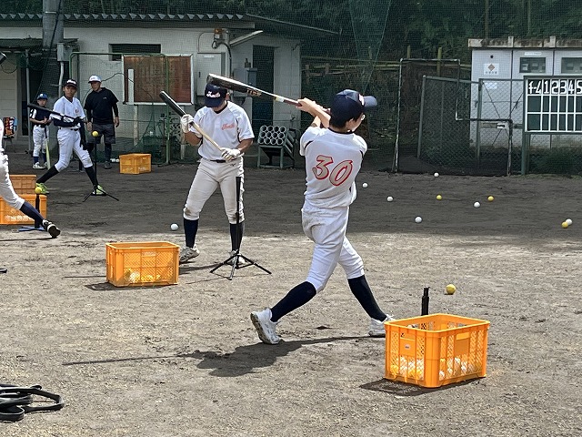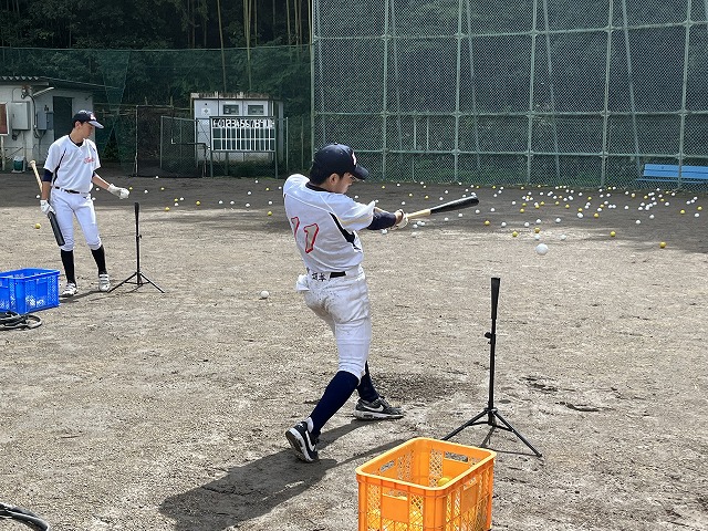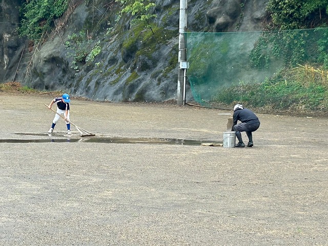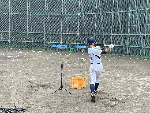 水取り作業で何とか一部をグラウンドの一部が使用できるようになりローとミドルのティーを使ってのバッティングを実施。