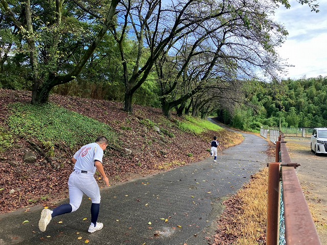 今回はグラウンドは全面で使用できなかったため残念ながらパワー走はなく、グラウンド横の道を使って鬼ごっこを行いました。