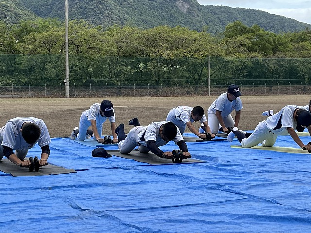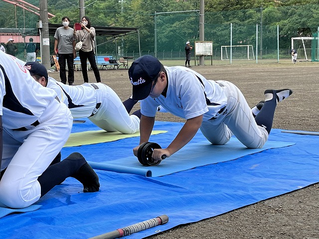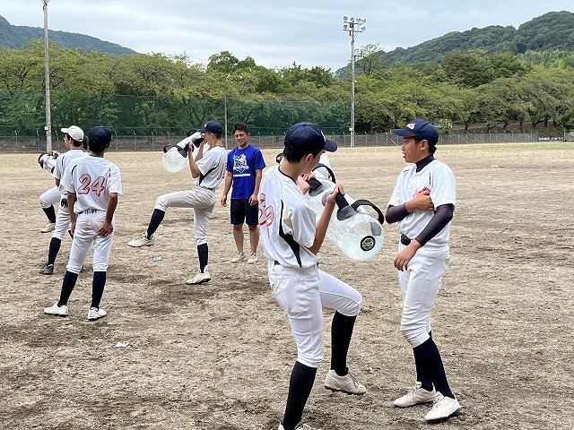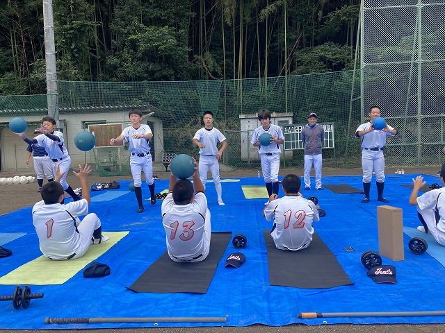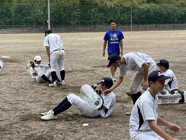 第2回目は赤城第二グラウンドでの練習となりました。今回は事前練習の流れの確認から始まり、新たにメディシンボール、ウォーターバッグを使ったトレーニングなど本格的な基礎トレーニングを行いました。 初めての強度の高い練習にみんな苦しい表情で練習で取り組んでいました。 苦しいときは「しんどい」、「苦しい」などの後ろ向きではなく、前向きな言葉で奮い立たせて、大きな声を出してみんなで支え合いましょう!! 塾長のおっしゃる、「恥ずかしさよりバカになりましょう」の精神で頑張っていきましょう!!