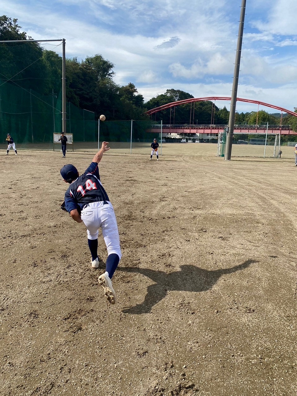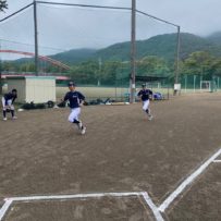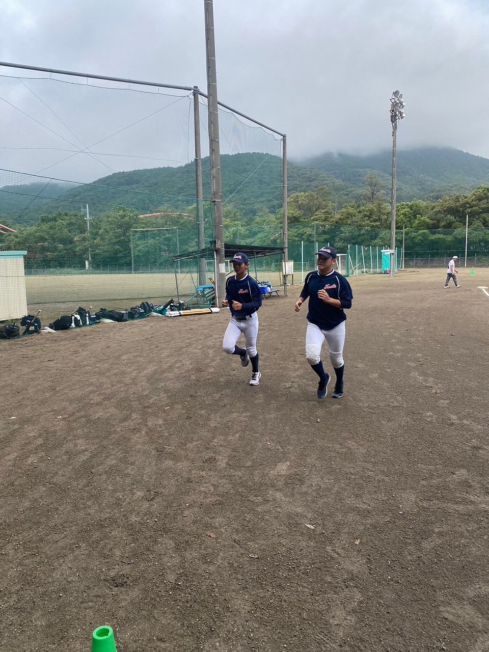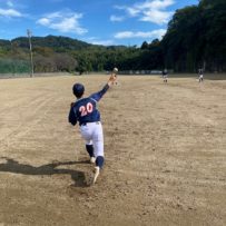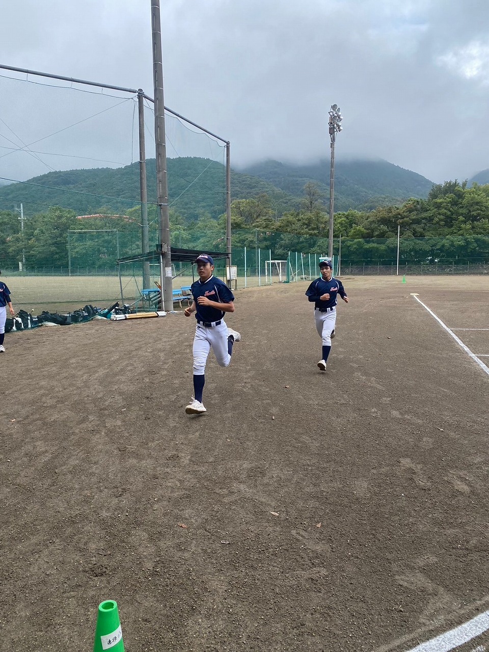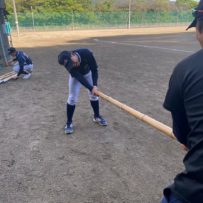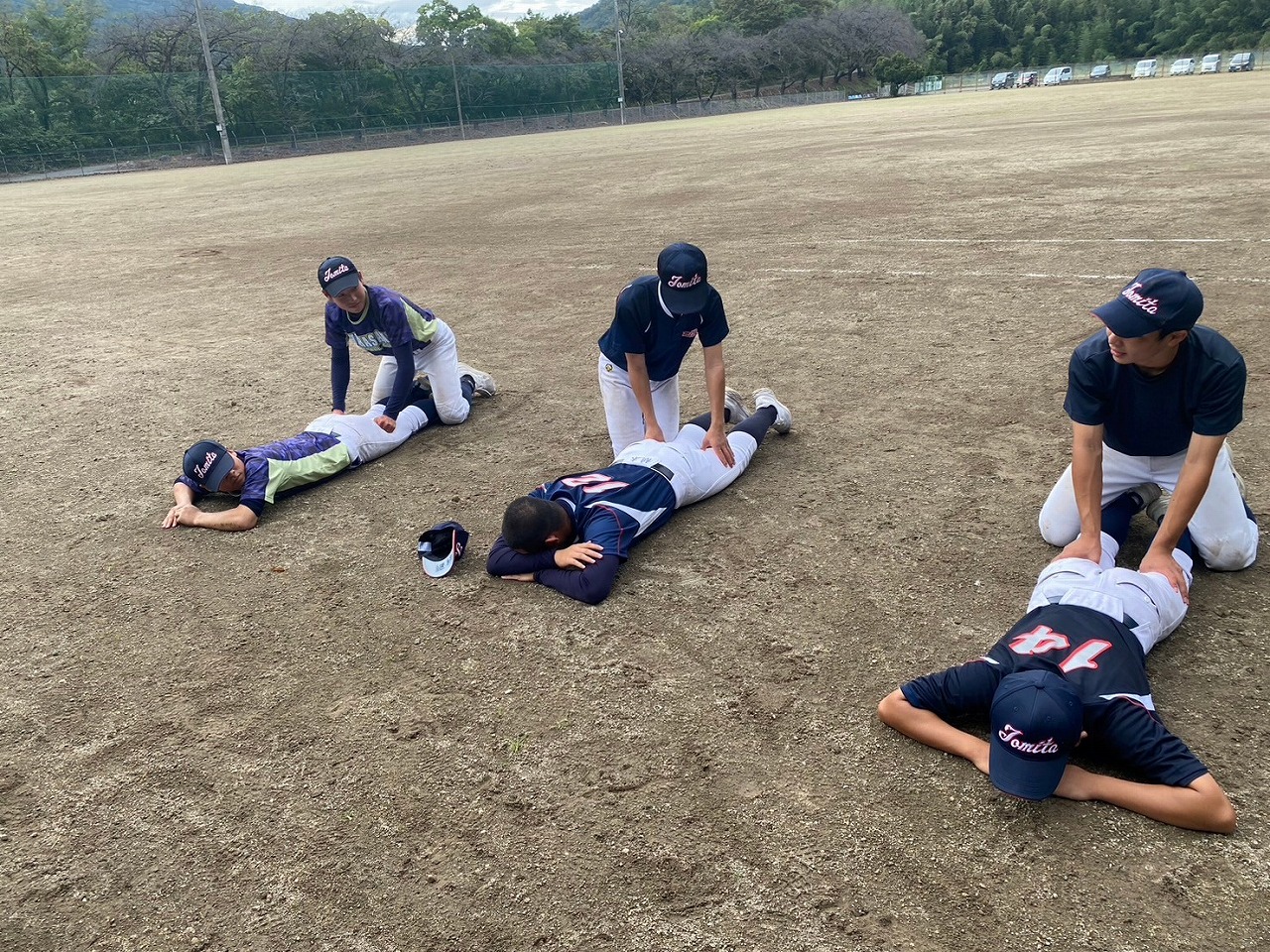 本日の練習はダイヤモンドペガサスJrに参加している仲間が久々に加わって、賑やかなスタートになりました。和やかムードの中にも時間に間に合うように行動する意思を感じ、さすが中学3年生!出だしのランニングの掛け声も進化?していて自分たちで考えより良い事を実行出来ていました。パワー走での声掛けも徐々に出来るようになってきてペースもつかめてきたようです。パワー走終了後グランドの隅っこに走っていく子もいましたが。。。限界まで頑張った証拠だ!偉い!股関節の柔軟性を高める動作には、みんな苦労している様です(^^;)投げる・打つ・守る、全てにおいて股関節の動きが重要ですから、皆さんよーく柔軟体操をしましょう!股関節を上手に使って体重移動したパワーを遠心力でヘッドに伝えるためには腕・手の力でブレーキをかけないことが大切だと教わりました。それを実行するために1個1個の練習があるので、目的意識を持って臨みましょう。最後の「栄冠は君に輝く」も最初から大きな声で歌いだせましたが、ちゃんと歌詞を覚えましょうね!!