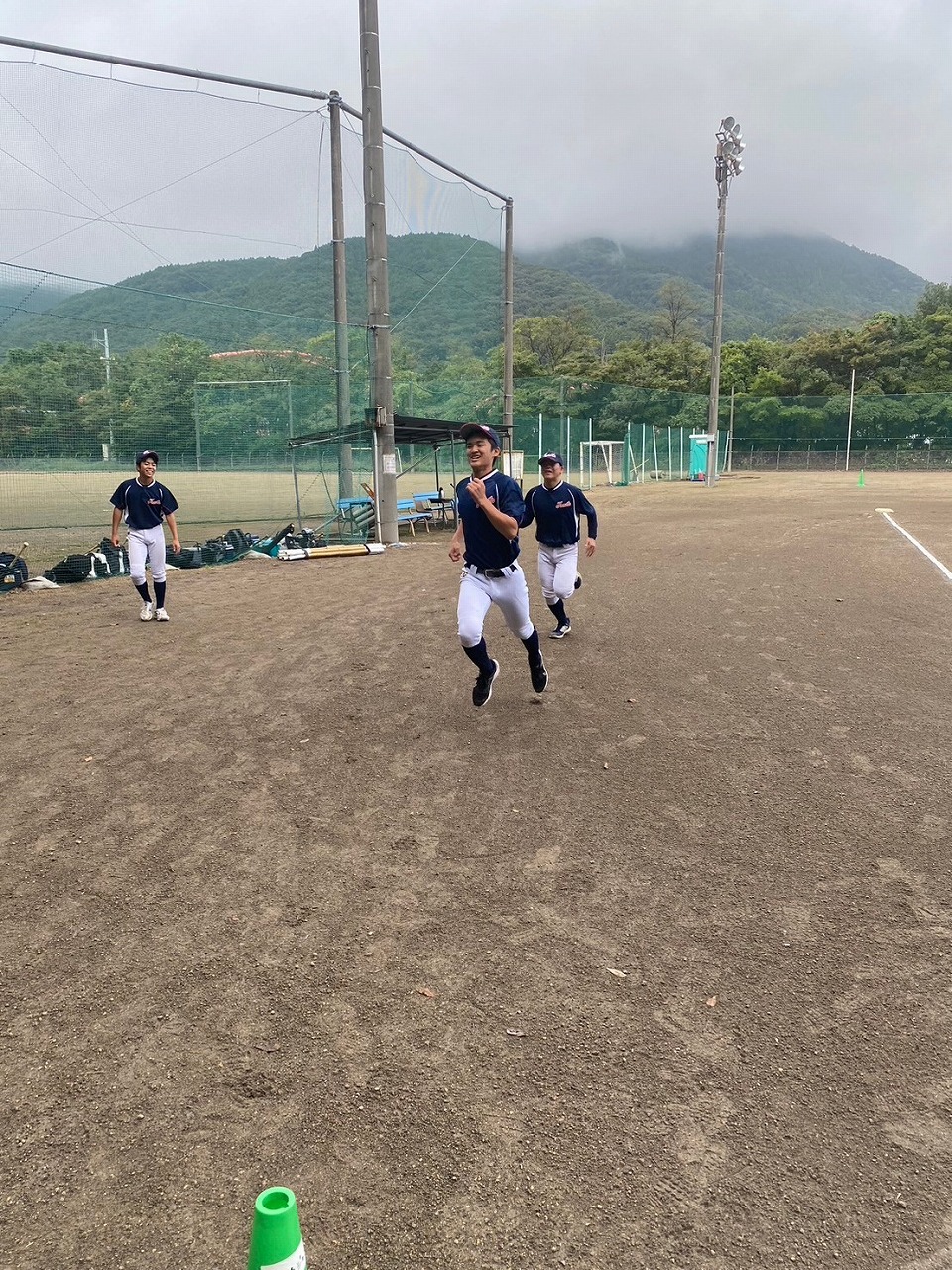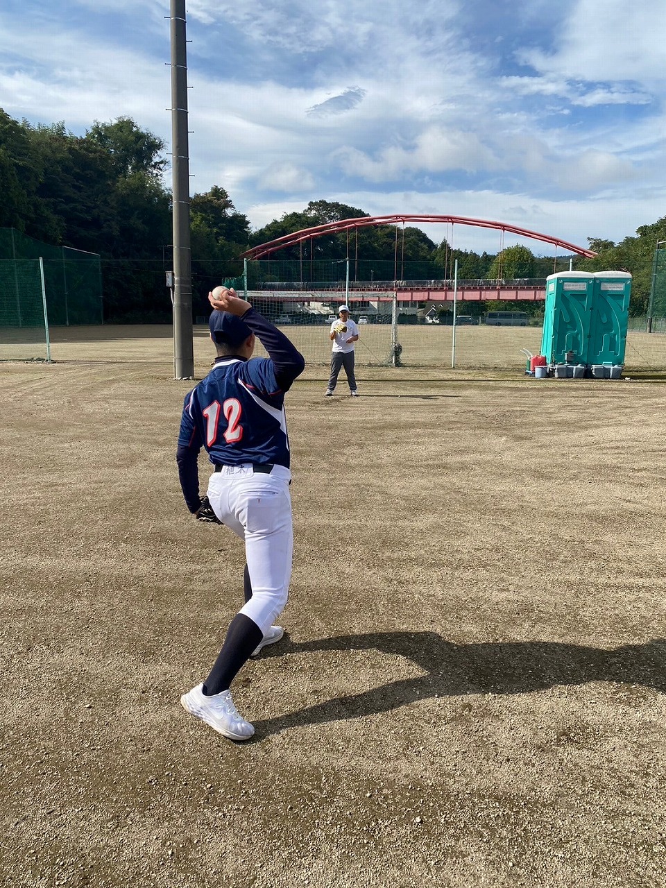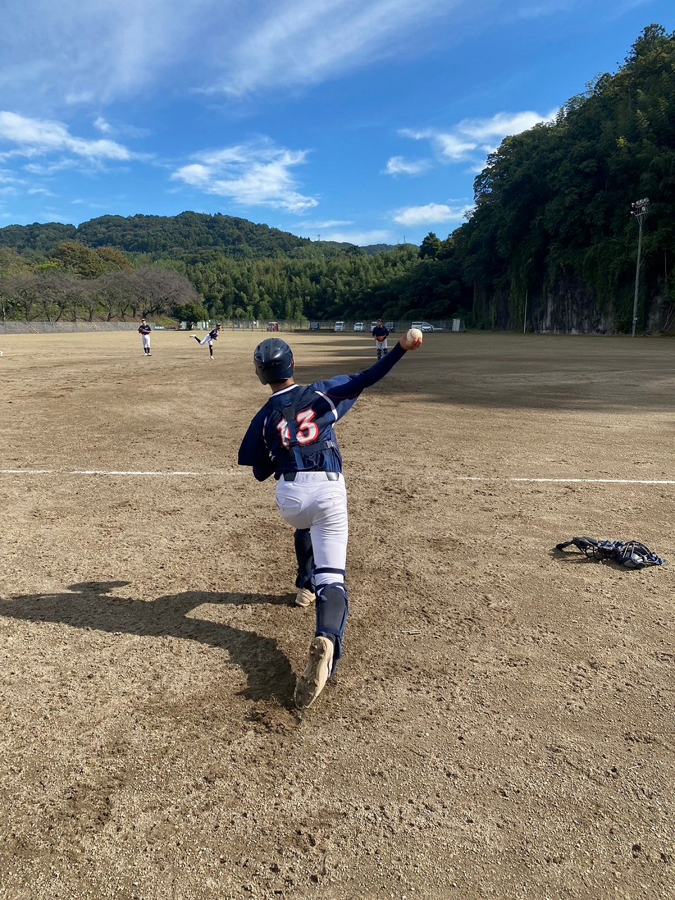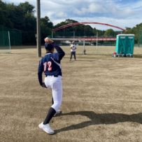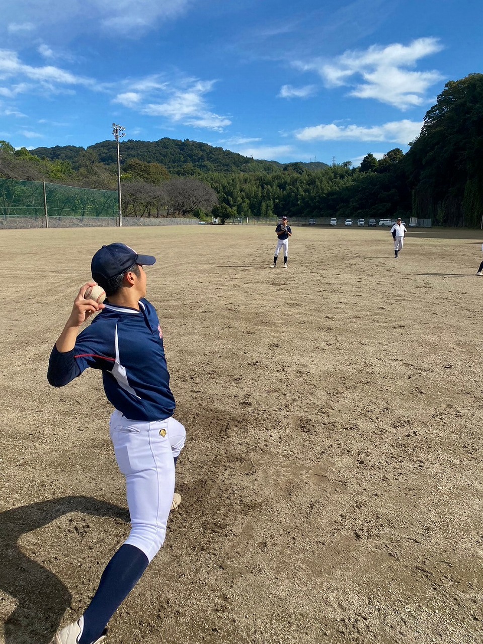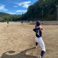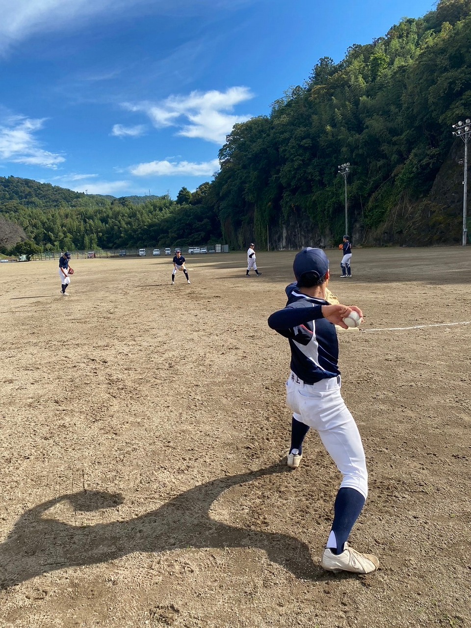 本日の練習はダイヤモンドペガサスJrに参加している仲間が久々に加わって、賑やかなスタートになりました。和やかムードの中にも時間に間に合うように行動する意思を感じ、さすが中学3年生!出だしのランニングの掛け声も進化?していて自分たちで考えより良い事を実行出来ていました。パワー走での声掛けも徐々に出来るようになってきてペースもつかめてきたようです。パワー走終了後グランドの隅っこに走っていく子もいましたが。。。限界まで頑張った証拠だ!偉い!股関節の柔軟性を高める動作には、みんな苦労している様です(^^;)投げる・打つ・守る、全てにおいて股関節の動きが重要ですから、皆さんよーく柔軟体操をしましょう!股関節を上手に使って体重移動したパワーを遠心力でヘッドに伝えるためには腕・手の力でブレーキをかけないことが大切だと教わりました。それを実行するために1個1個の練習があるので、目的意識を持って臨みましょう。最後の「栄冠は君に輝く」も最初から大きな声で歌いだせましたが、ちゃんと歌詞を覚えましょうね!!
