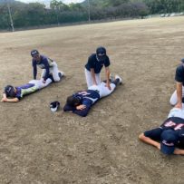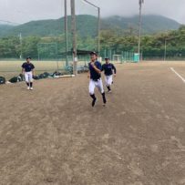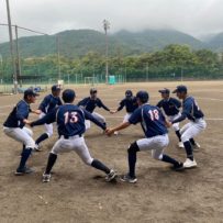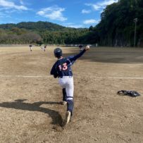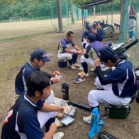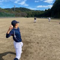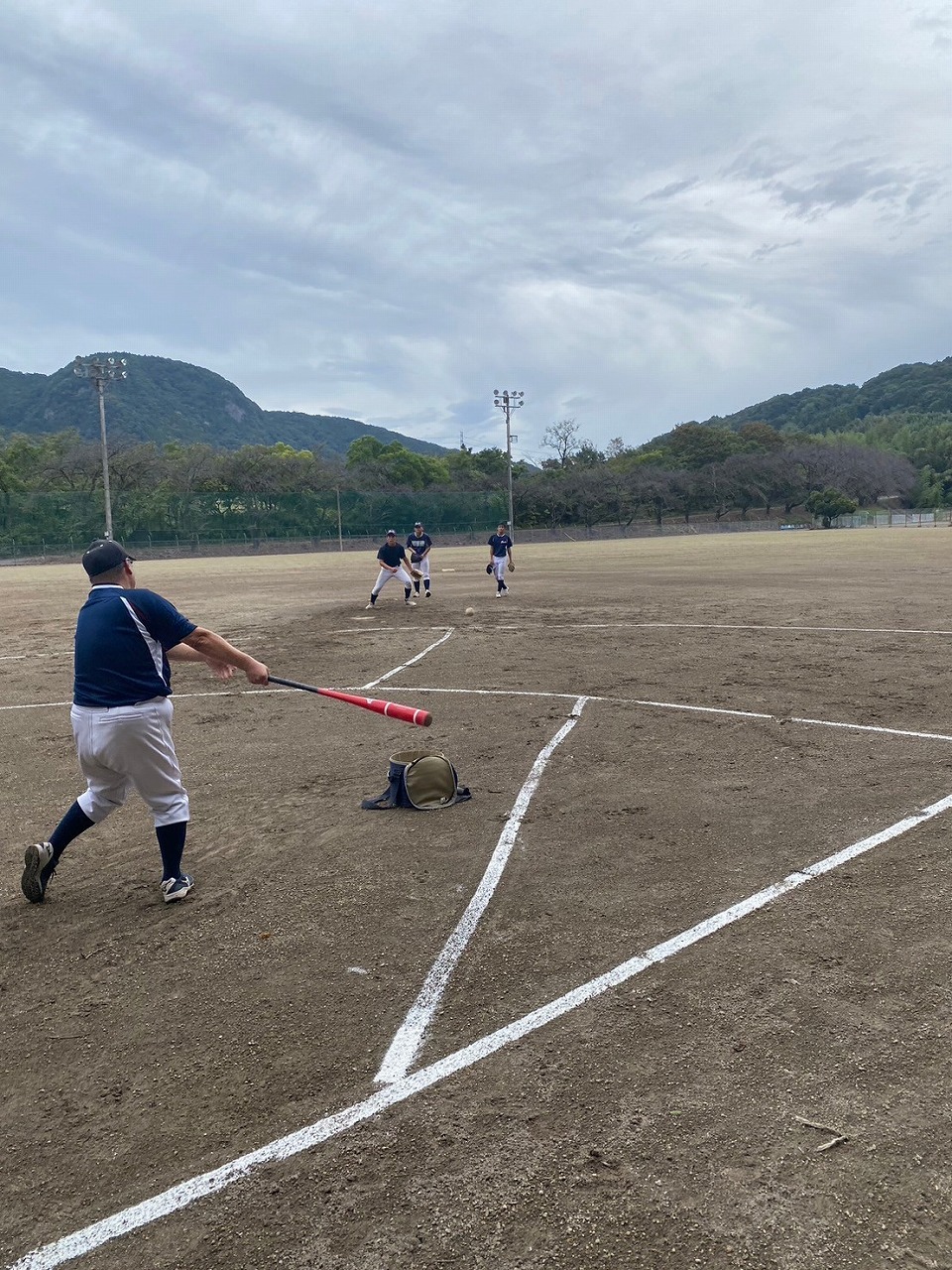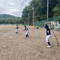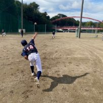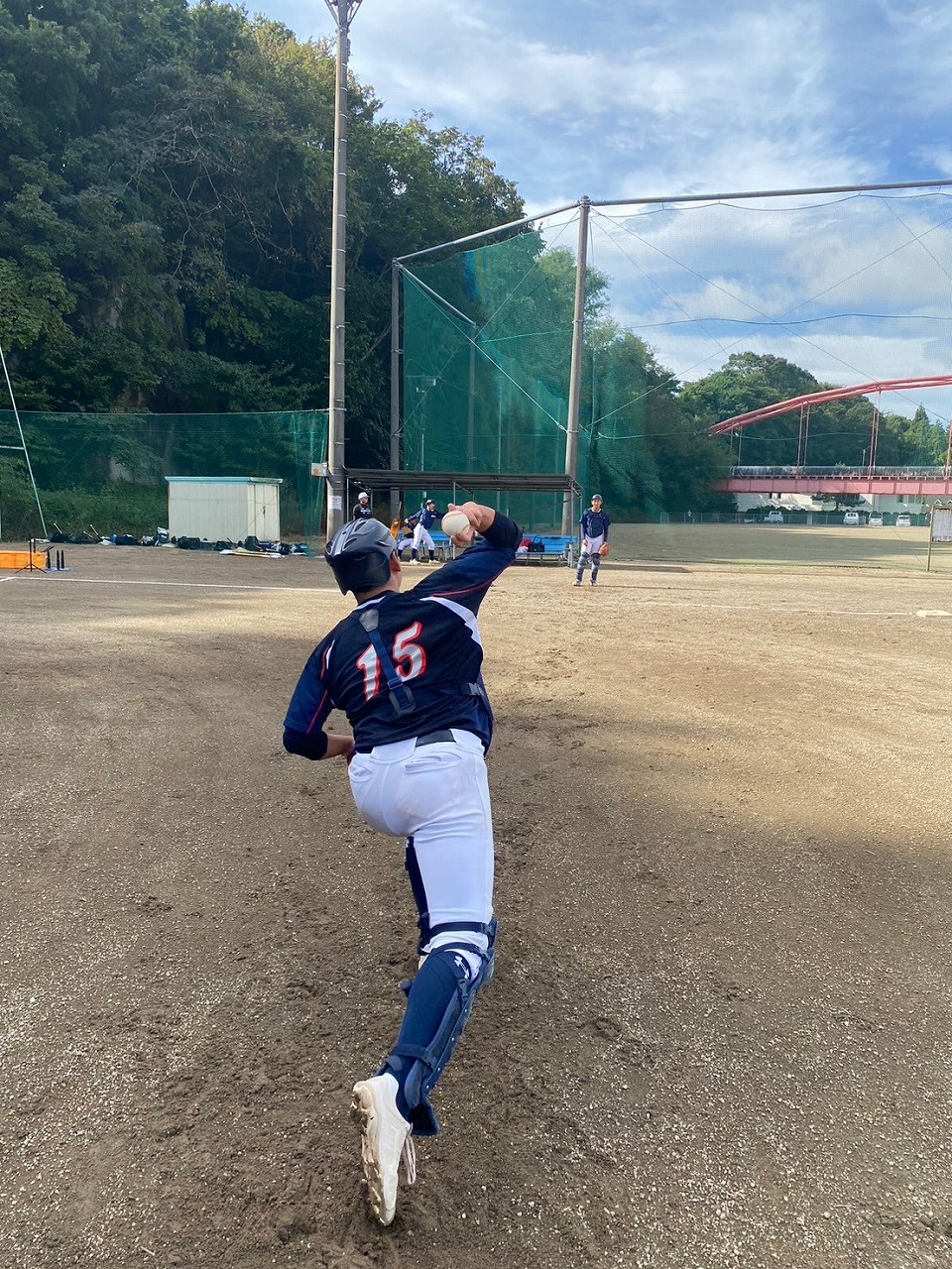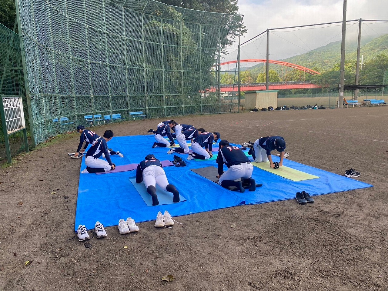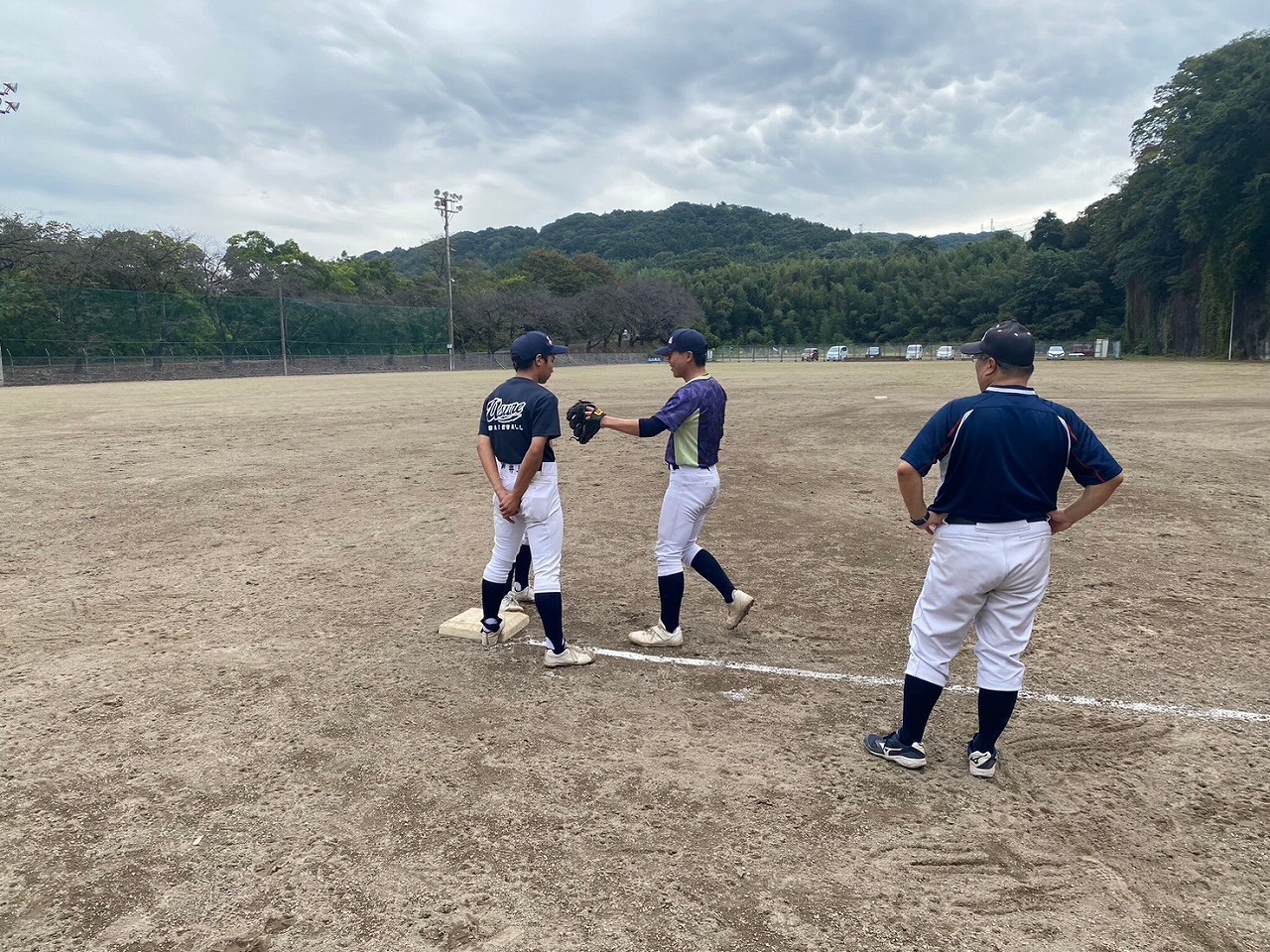 本日の練習はダイヤモンドペガサスJrに参加している仲間が久々に加わって、賑やかなスタートになりました。和やかムードの中にも時間に間に合うように行動する意思を感じ、さすが中学3年生!出だしのランニングの掛け声も進化?していて自分たちで考えより良い事を実行出来ていました。パワー走での声掛けも徐々に出来るようになってきてペースもつかめてきたようです。パワー走終了後グランドの隅っこに走っていく子もいましたが。。。限界まで頑張った証拠だ!偉い!股関節の柔軟性を高める動作には、みんな苦労している様です(^^;)投げる・打つ・守る、全てにおいて股関節の動きが重要ですから、皆さんよーく柔軟体操をしましょう!股関節を上手に使って体重移動したパワーを遠心力でヘッドに伝えるためには腕・手の力でブレーキをかけないことが大切だと教わりました。それを実行するために1個1個の練習があるので、目的意識を持って臨みましょう。最後の「栄冠は君に輝く」も最初から大きな声で歌いだせましたが、ちゃんと歌詞を覚えましょうね!!