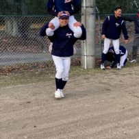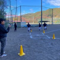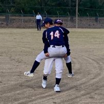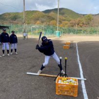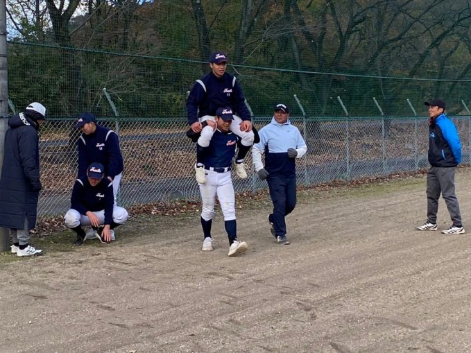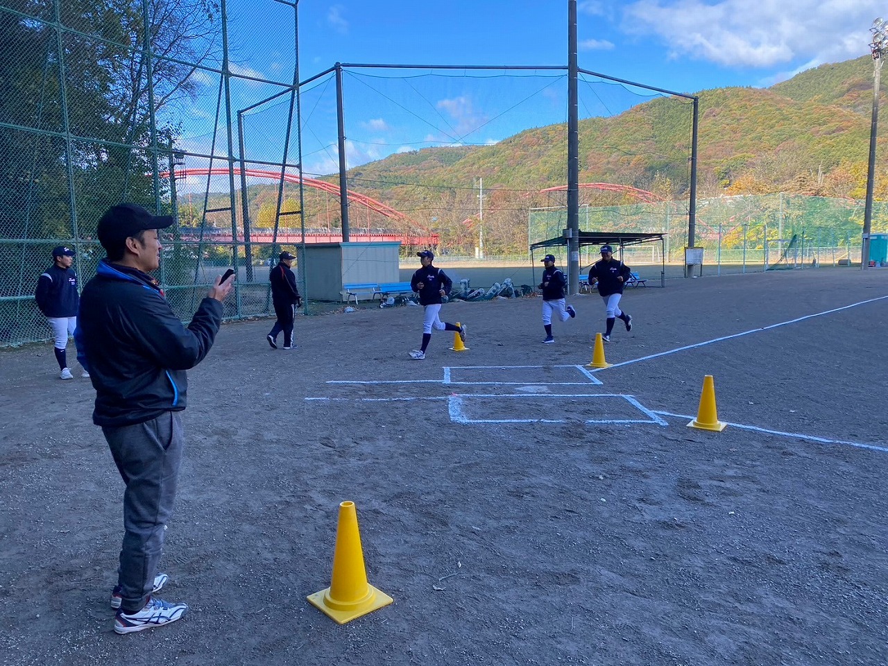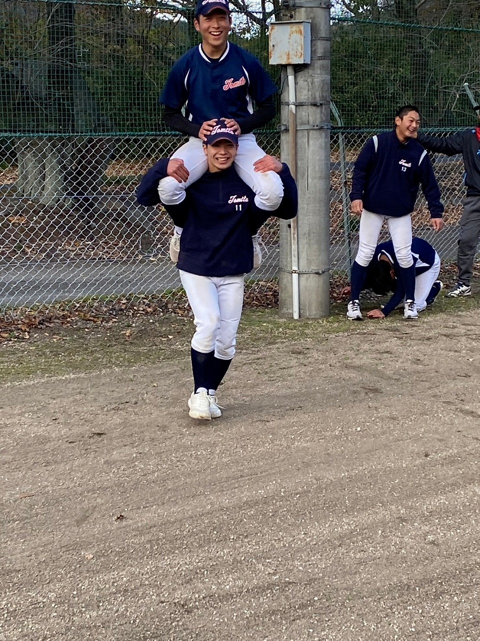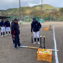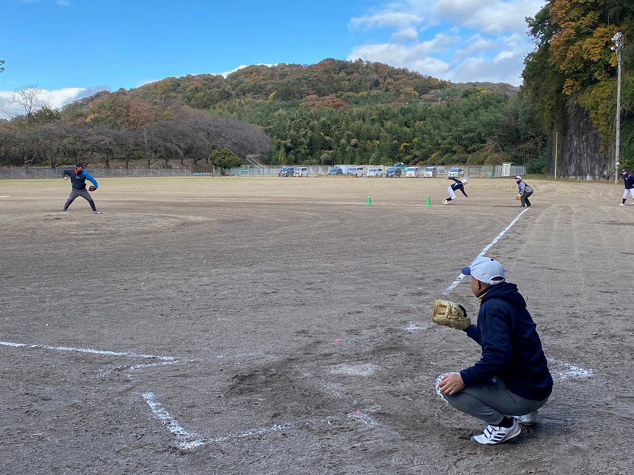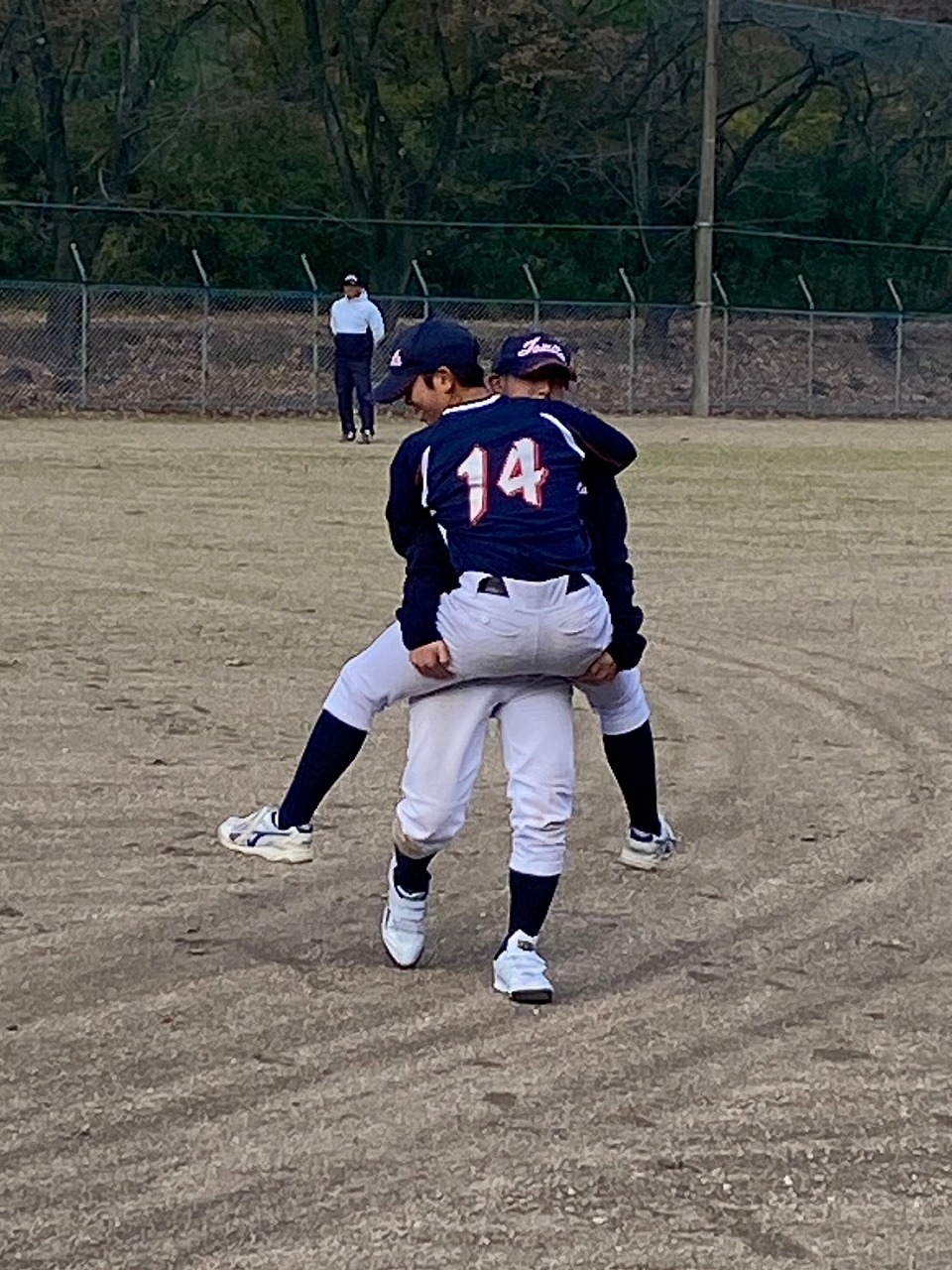 本日も強風で極寒のなか内容の濃い練習が始まりました!12/8に富田塾OBとの交流戦があります。その守備位置や打順を塾生たちで決めるんですが、事前練習をテキパキとこなし、塾長が到着する前に話しあって決めることができました。交流戦楽しみですね!初めにバッティング練習。20cm間隔で前後に置いたティーにボールを乗せ一振りで2球打つ!ミートポイントが前だと当たらない。。。たまに2球ともいい感じに飛ばせるときもあるので、その感覚を忘れずに引き付けて!そして本日のパワー走は10周!!!さすがに何人か顔が青くなっていました。。。その直後におにぎり!スゲー中学生。打った後一塁に走り出す動画を撮りましたが、塾長「もっと早くできるんじゃないか?」。2回目を撮影すると格段に速くなっている。。。塾長「そこに着眼できるかどうかだけでパフォーマンスは向上する!」どこかより良くできるのではないか?と常に意識して臨みたいですね。終盤におんぶ・だっこ・肩車レースをやりましたが、みんなヒーヒー言いながら頑張りました。今日もだいぶ鍛えたね。お疲れ!