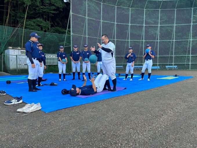 いよいよ富田塾硬式24期生の練習が始まりました!初回ということで、練習メニューの説明と練習に臨む姿勢について塾長より丁寧に説明して頂きました。軟式から継続して参加した選手や硬式から新たに参加した選手、中学校もバラバラですが初日の練習ですぐに打ち解けて練習に臨んでいるようでした。富田塾名物パワー走では、まだまだ暑いのも手伝ってかクリア出来るようになるのか心配になる位バテバテ。基礎トレーニングも普段やらない態勢で、ときにウギャーという声が聞こえたかな?でもこのメニューを頑張ることによって高校にいっても頑張れる心と体を作っていってもらえればと思います。最後にはキャプテンと副キャプテンも決まり、次の練習に向け決意新たな塾生達でした。