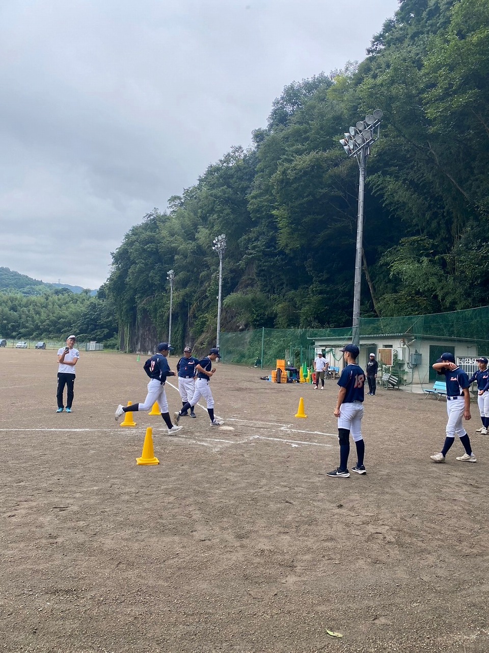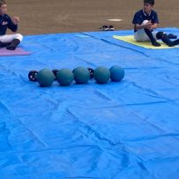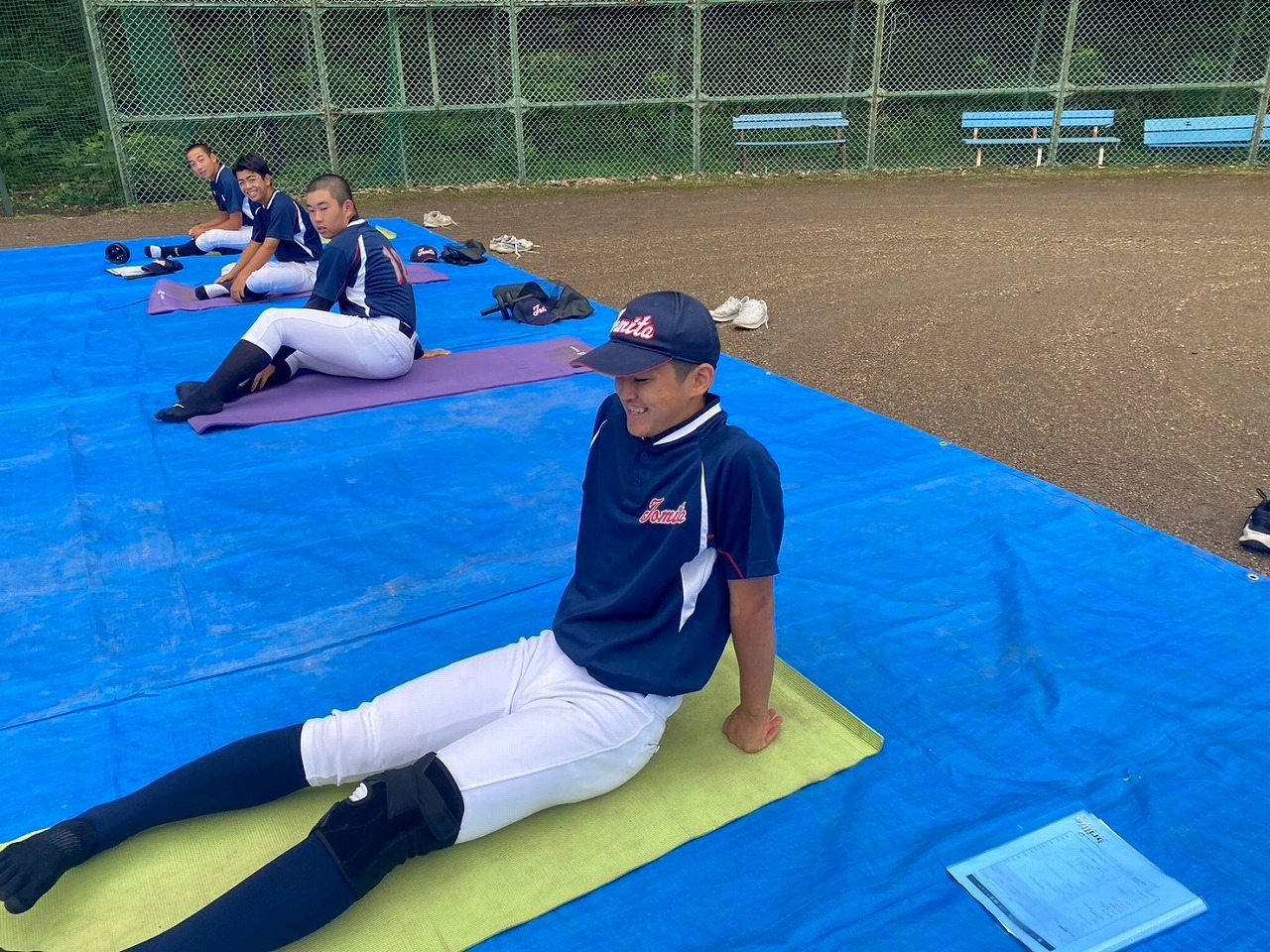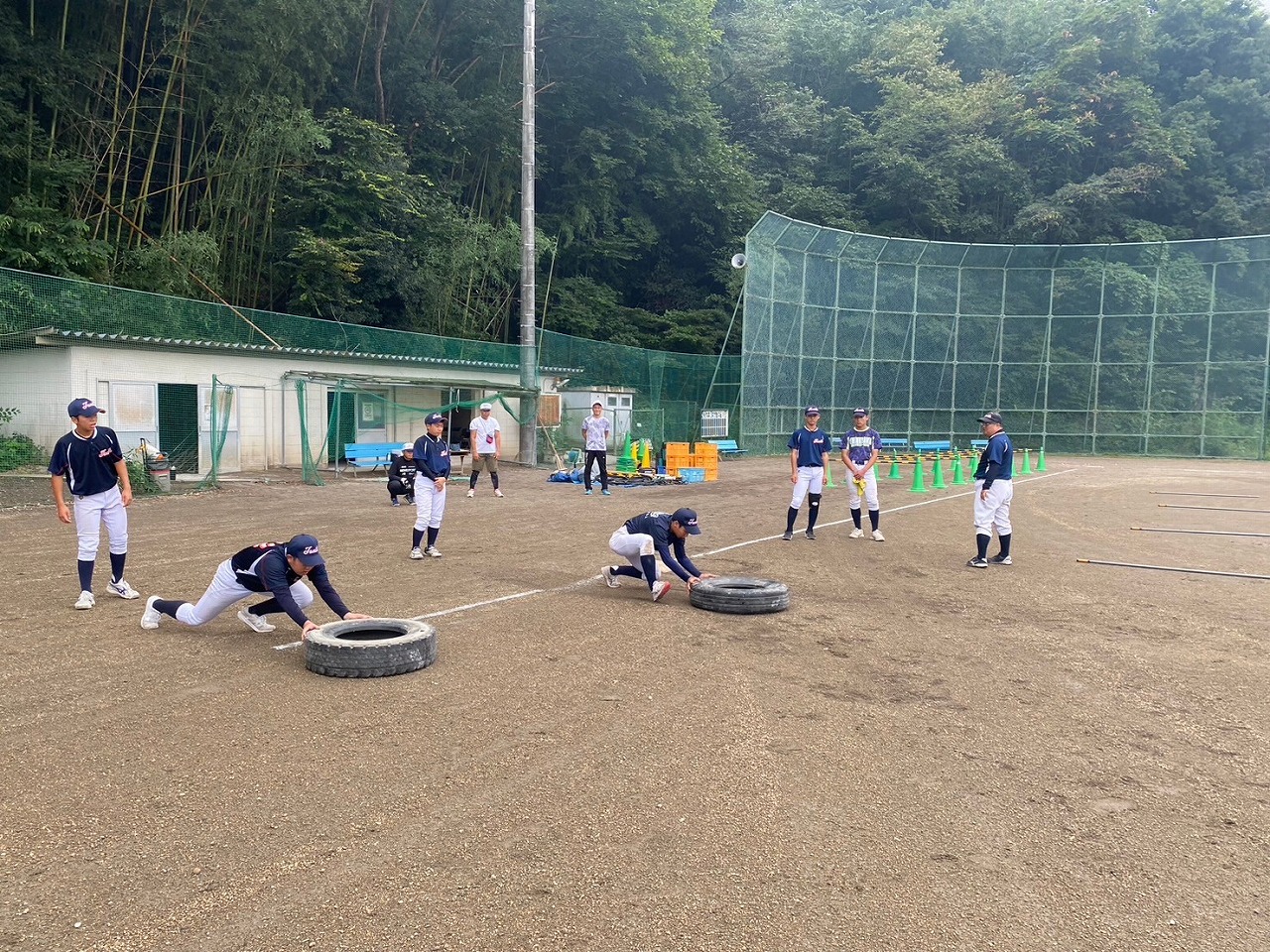 第二回目の練習から腹筋ローラーやメディシンボールを使用しての事前練習が始まりました。道具の準備も含め時間に間に合うよう早めに来ている塾生が多く、事前練習後にバットを振ったり意欲的に行動していました。使った道具をきれいに並べる等、塾長に教わったことを忘れず実行していて保護者としてもホッとする思いでした。スイングや走塁の理論を詳しく教わり、なかなかすぐには出来ないかもしれないけど、繰り返しやることで必ず上達するだろうしパワー走も回数を重ねることで徐々に持久力が高まるでしょうから、全力を出し切って頑張って貰えればと思います。かなりゼーゼーして辛そうですけどね。頑張れ!練習最後に大声で「栄冠は君に輝く」を歌いますが、まだまだ声が小さくて遠慮があるのかな?何も恥ずかしくないんだから自信を持って全力の大きな声を出して貰いたいものです。馬鹿になれ!