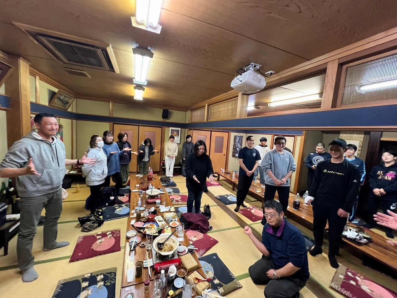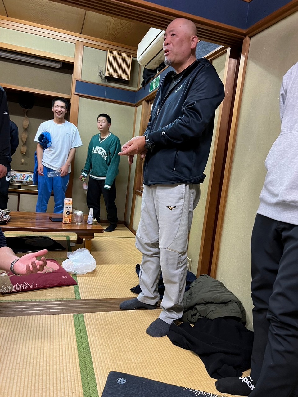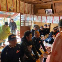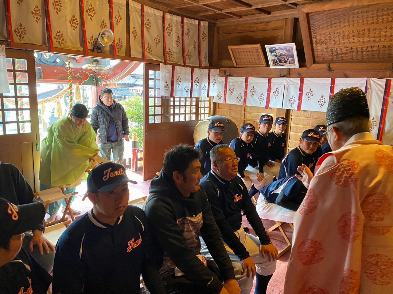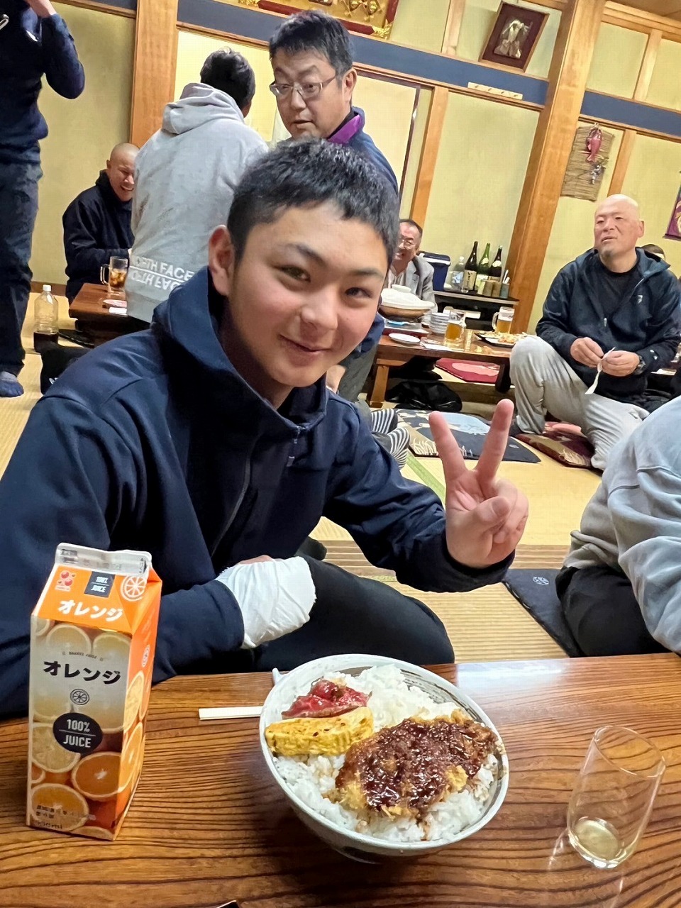 新年明けましておめでとうございます。本年1回目の練習が始まりました!先週私立高校の試験があり、合格した塾生も多数おりました。2月に実施される公立高校を第一志望としている塾生もおり、皆が希望の高校に進学できることを保護者一同心より願っています。塾生たちが高校生になってから、保護者の皆さんとは是非ともグランドで再会したいですね!お正月明けの久々の練習は、とにかく下半身!!メディシンボールを使っての体重移動。下半身の使い方を重点的に教わりました。また、本日は2回目の食事トレーニングの日でした。保護者の方が美味しいカレーを作って下さって、塾生は4合飯をそれはそれは美味しそうに食べていました。。。壁に向かって食べている塾生が。。。でも1回目より明らかにスピードアップしています!夕飯の大盛りカツ丼も頑張れよ。。。いつもより練習を早めに切り上げ、駒形神社さんに必勝祈願に行ってまいりました。拝殿にあがり祝詞を上げて頂くと荘厳な気持ちになります。気持ち新たに受験とカツ丼と向き合えるというものです。その後、渋川の桑野屋さんに移動し、塾生はカツ丼、保護者は新年会を行いました。冒頭に塾長から「感謝」に関するお話を頂き、わたくしも危うく涙腺崩壊しそうになっていたところ、一足早く後ろから「グシュグシュ、ズビズビッ」(笑)気が付けば中学時代もあとわずか。残り僅かな時間を大切に全力を出し切ろう!!