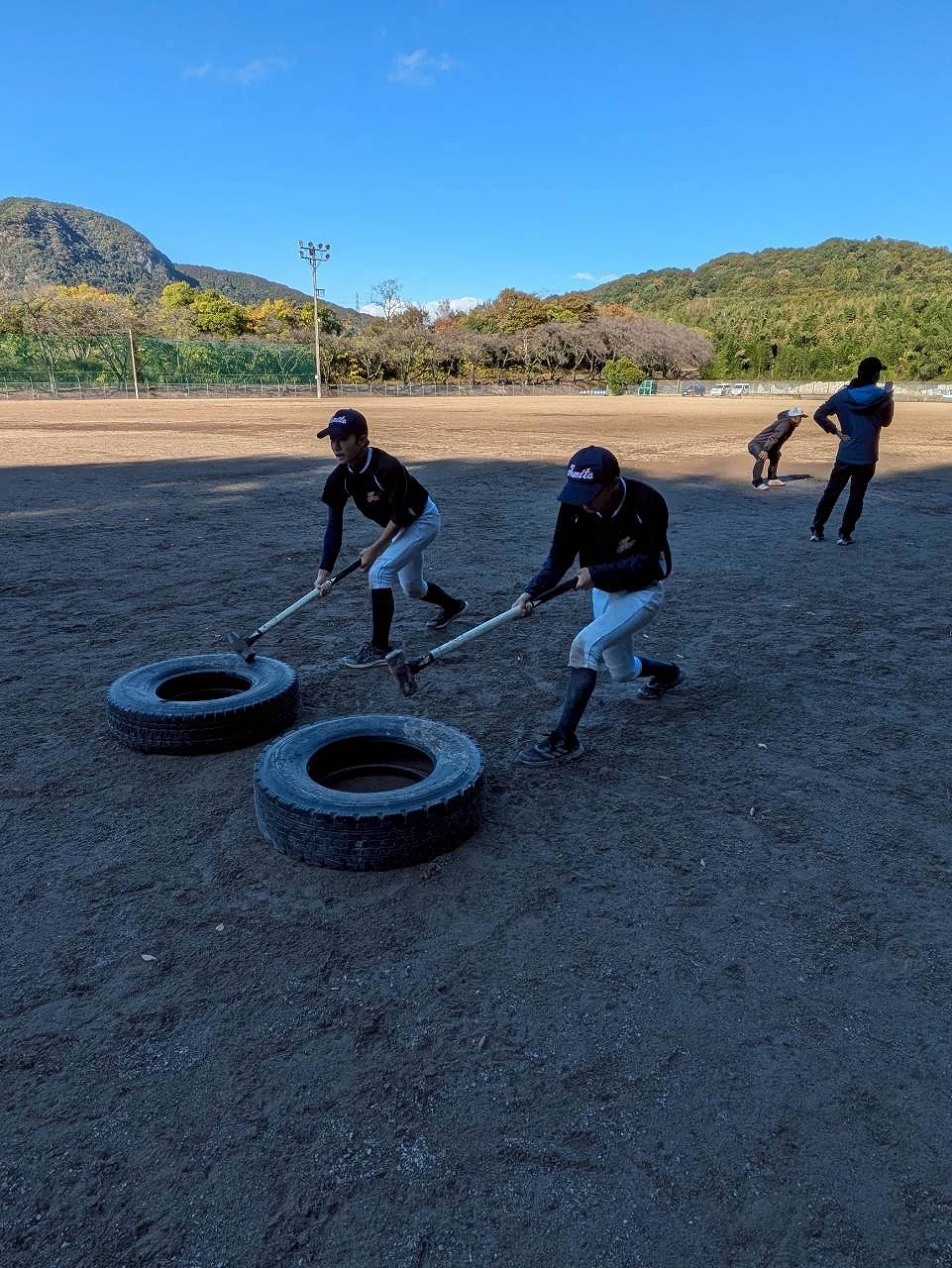 硬式富田塾が始まり早2か月が経ちました!食事合宿も2回開催され塾生たちも富田塾のイロハを掴みつつあります!本日も昨日の雨の影響でグランドには水たまり。水取りと水遊びから始まった本日。晴れ間と風のコントラストでどんどんグランドが乾いていきました!我々の運気は上々☝