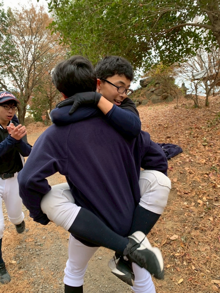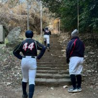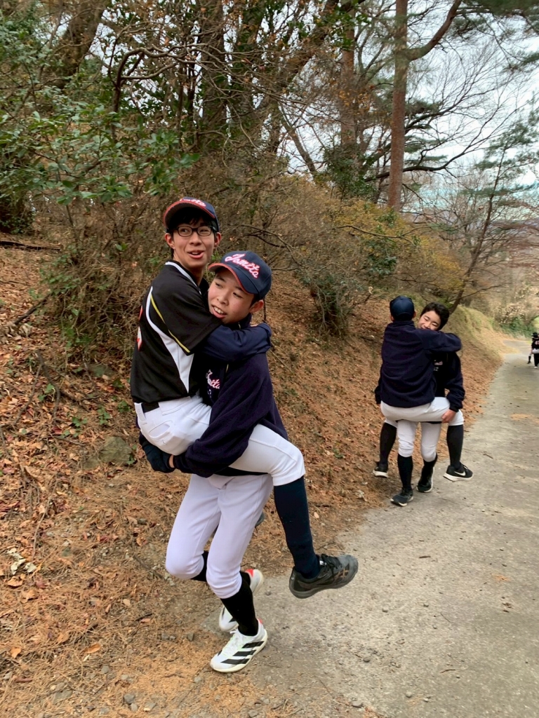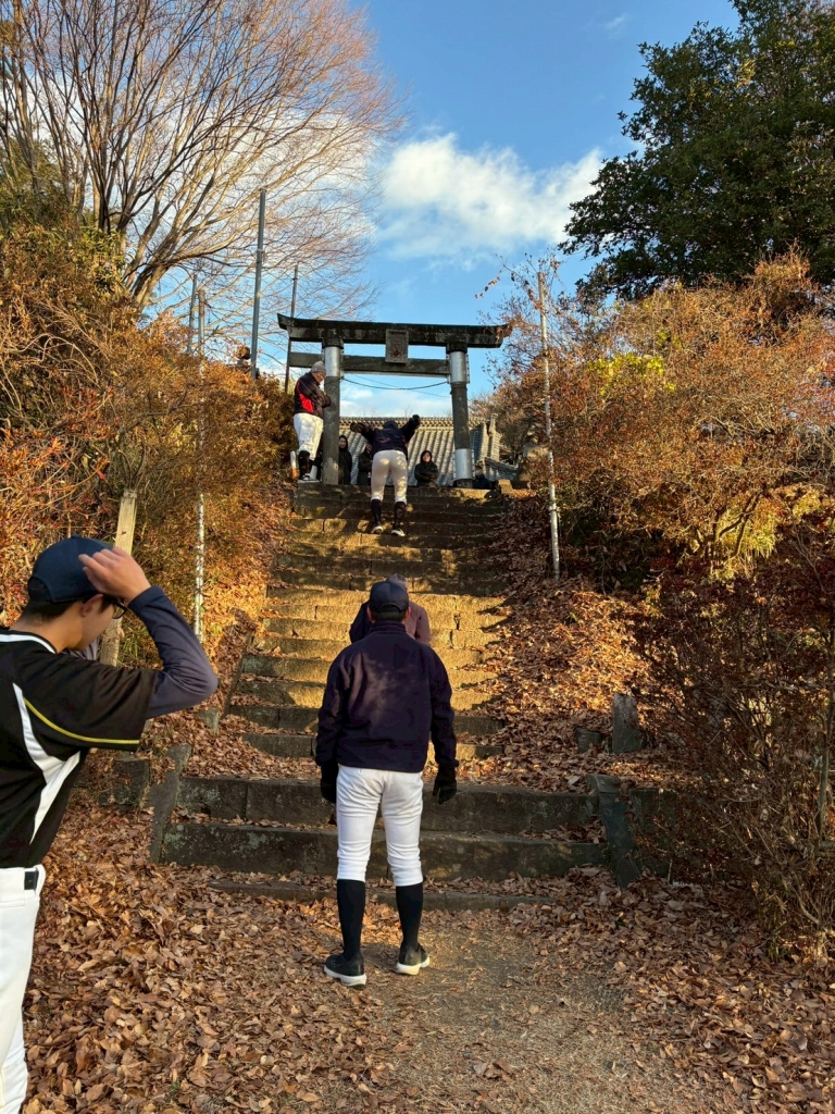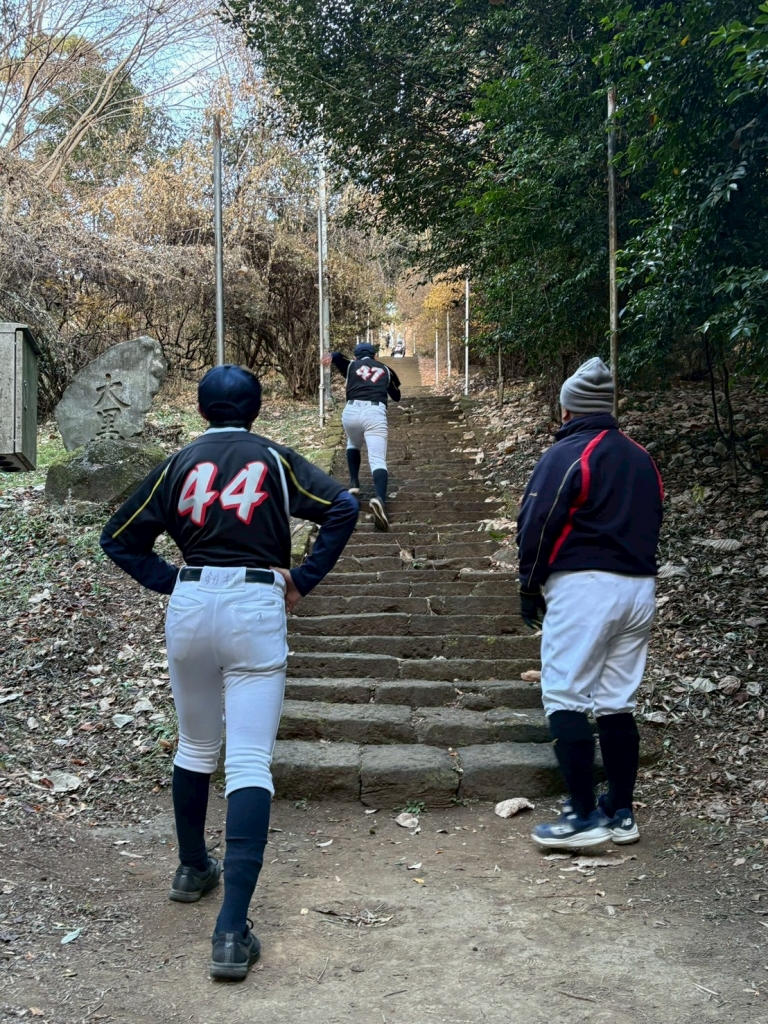 本日は赤城神社(十二山)にて、下半身強化を目的とした練習を行いました。おんぶや抱っこを取り入れた負荷の高いトレーニングを通じて、塾生たちの足腰はまるで大地に根を張る幹のように鍛えられていきます。この経験が、今後の野球にしっかりと生かされることを願っています。