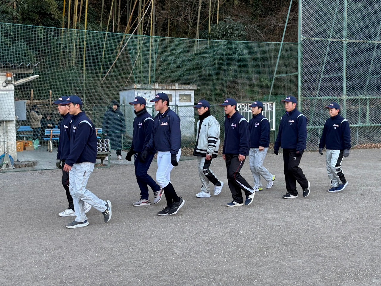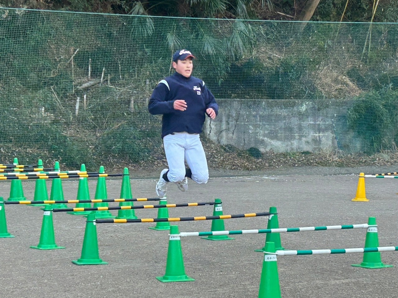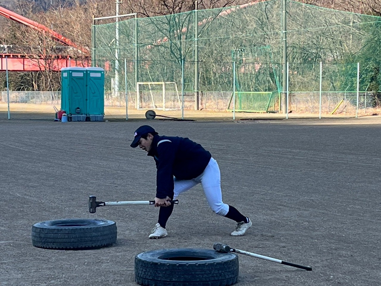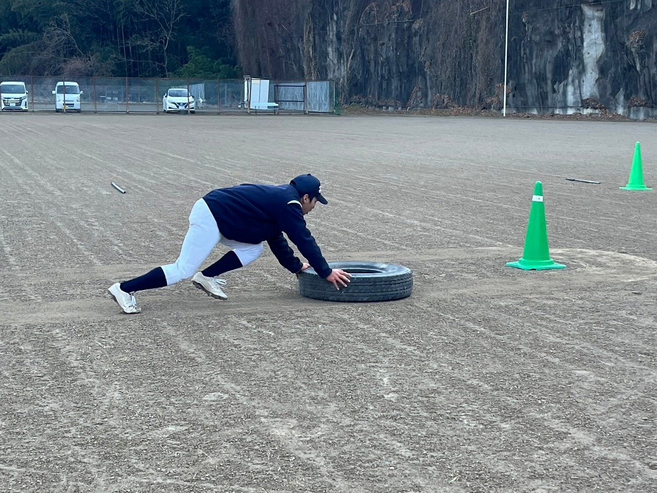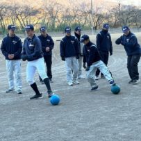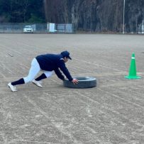 本日も暗いうちから集合し練習が始まりました。2月になりましたが雪もなく、比較的暖かな朝でした。塾生たちはテキパキと準備をし、練習前アップを開始。今日からウォーターバックが20ℓ!!私なんか持ってるだけで、何もできません!塾生たちもかなり苦労しておりました。。。いつものサーキットの後アメリカンノック。ここで塾長に悲劇が!ハムストリングに激痛!!塾生達のために申し訳ありません!保護者は先週からの続きでボール巻き。先週来れなかった保護者の方が挑戦しましたが、同じところをグルグル?なんかテープが浮き上がってますね。。。午後はティーバッティングの後、シャトルラン。テンポにあわせて80本。徐々にテンポアップしていきますので一人づづ脱落。最後の一人が80本終わる直前に「120本達成したら、この後のパワー走はなし!」地獄!!脱落した塾生たちの応援の声はこれまでで一番大きかった。。。残念ながら107本で力尽き、直後にパワー走。最後まで残った子、一番練習になったね。パワー走では足がつる塾生が何人もでて、かなりハードだったんだね。この道を行けばどうなるものか。危ぶむなかれ。危ぶめば道は無し。踏み出せばその一足が道となり、迷わず行けよ、行けばわかるさ。