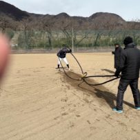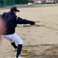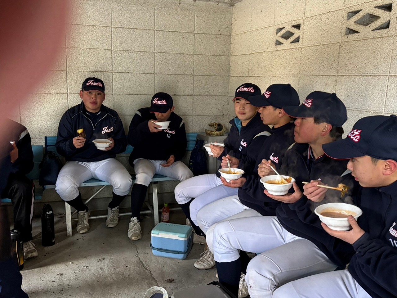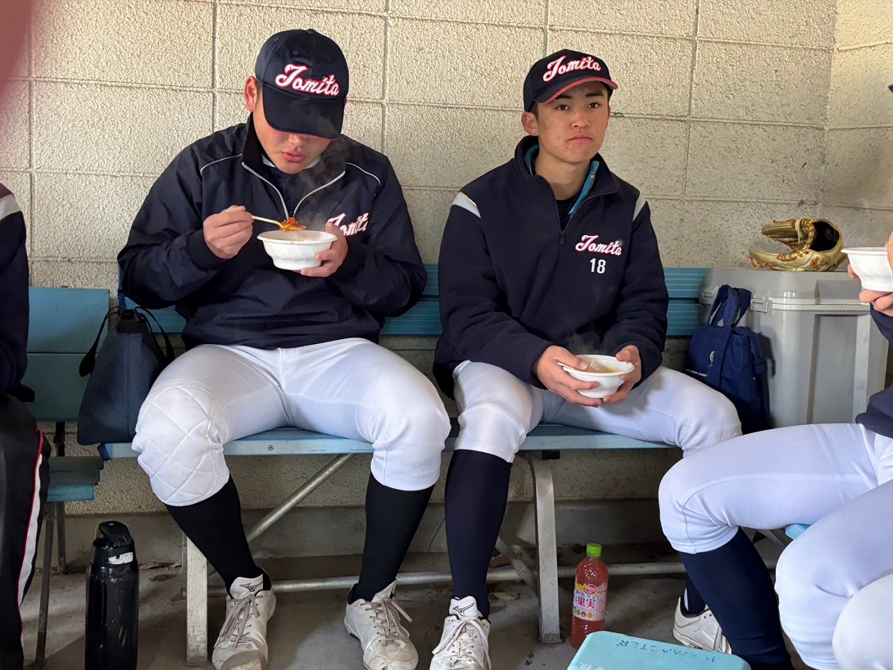 本日も始まりました富田塾。一年で最も寒い時期の練習です。先日の大雪も除雪して頂きグランドが使えます!ありがたや。塾生達はあまりの寒さに手袋を足に履く始末(笑)それでも日がさしてくれば塾生たちは元気にいつものトレーニングに励みました。寒い時期は毎回保護者のお母さんが温かい汁ものを作って持ってきてくれます。作ってきて頂けることを当たり前と思わず、感謝の気持ちを持ってもらいたいものですね。富田塾の練習も今日をいれてあと4回。塾生たちが元気に練習する姿を見るのが保護者の楽しみ。公立高校の受験も終わり結果を待つばかり。色々と着実にこなしてきて、いよいよ終わりが近づいてくるとなにやら寂しさが。。。 こんなにも濃密に指導してもらえることは今後無いと思うので、塾生達も後になってその有難さが分かると思います。また、 練習風景を一生懸命撮影して下さる保護者の方の写真には必ず「自分の指」が写っている。。。これを見れるのもあとわずか(笑)最後のランが楽しそうなこと。。。