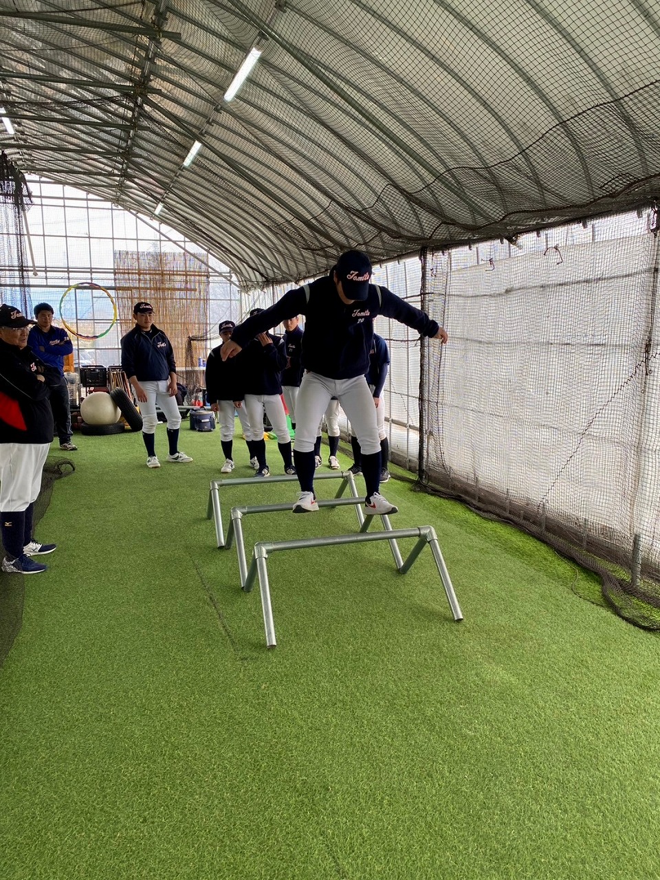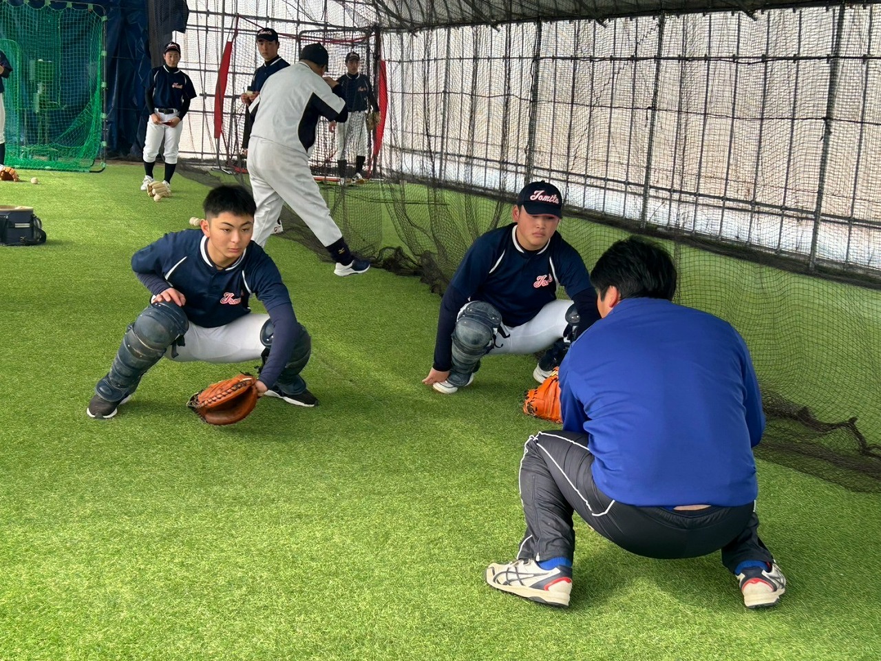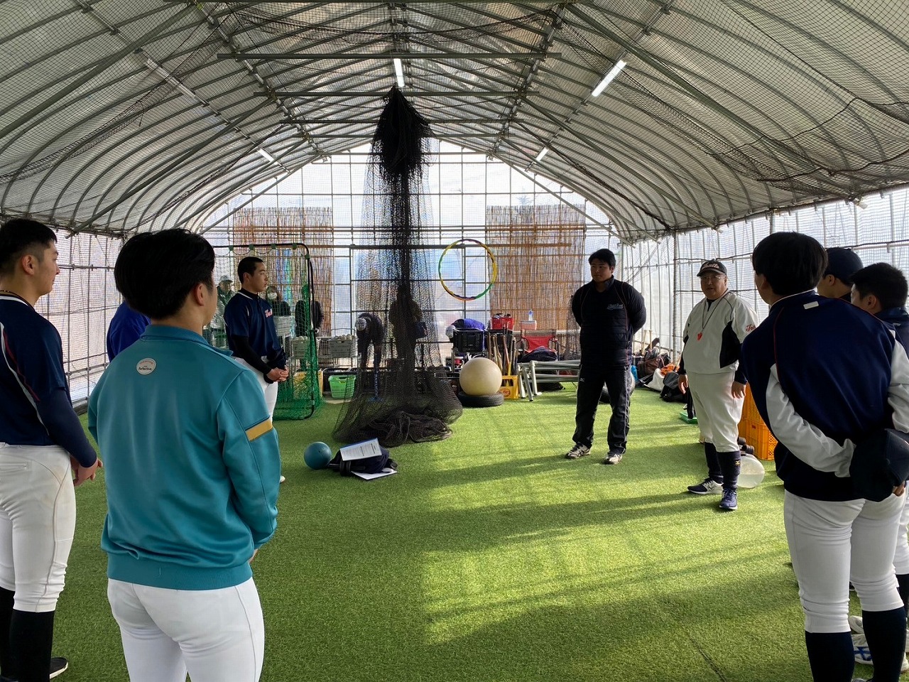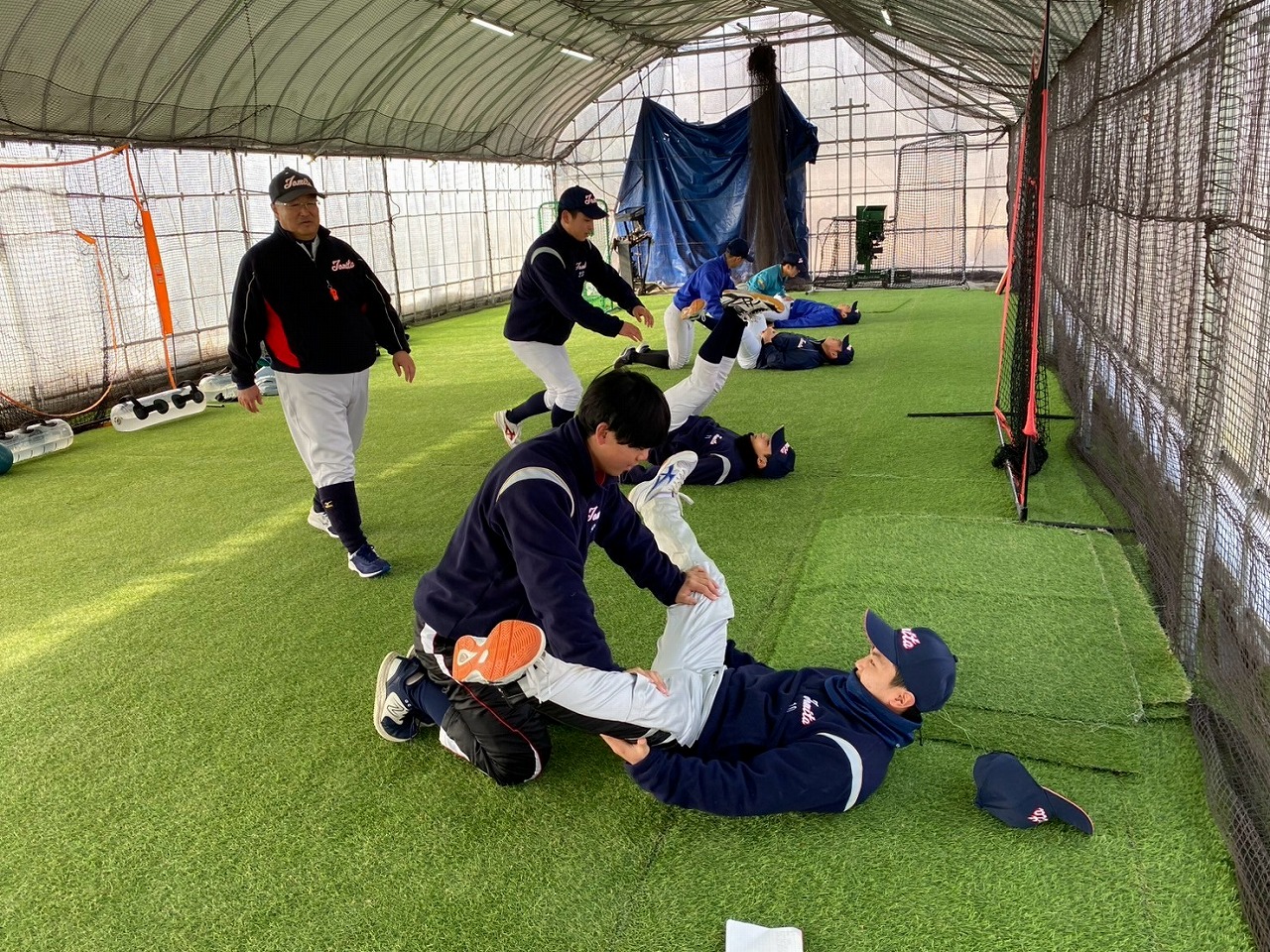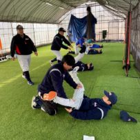 本日の練習は、赤城Gのコンディション不良のため急遽榛東村にある室内練習場をお借りして行いました。また、塾長のお知り合いで、NTT東日本でプレーしていた白石さんに指導に来ていただきました。ポジションは捕手ということで、キャッチャーの塾生にとっては特別に貴重な経験になったことと思います。また、バッティングもみて頂き、各人の修正点を細かく指導して頂きました。ピッチャー陣も下半身の使い方を動画でとってもらい、視聴してから修正することを繰り返しました。とても質の高い練習になったと思います。常日頃から「マイナスイメージの言葉を使ってはダメ!ポジティブな発言をしよう!」と塾長から教えられています。股関節の柔軟で足を大きく開かれる際、塾生「ギャー!きもちいいー!」途中から急に寒くなり、保護者の方が作って下さった温かいスープでみんなほっこり。練習も残すところあと1回。来週はグランド良ければいいな。