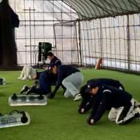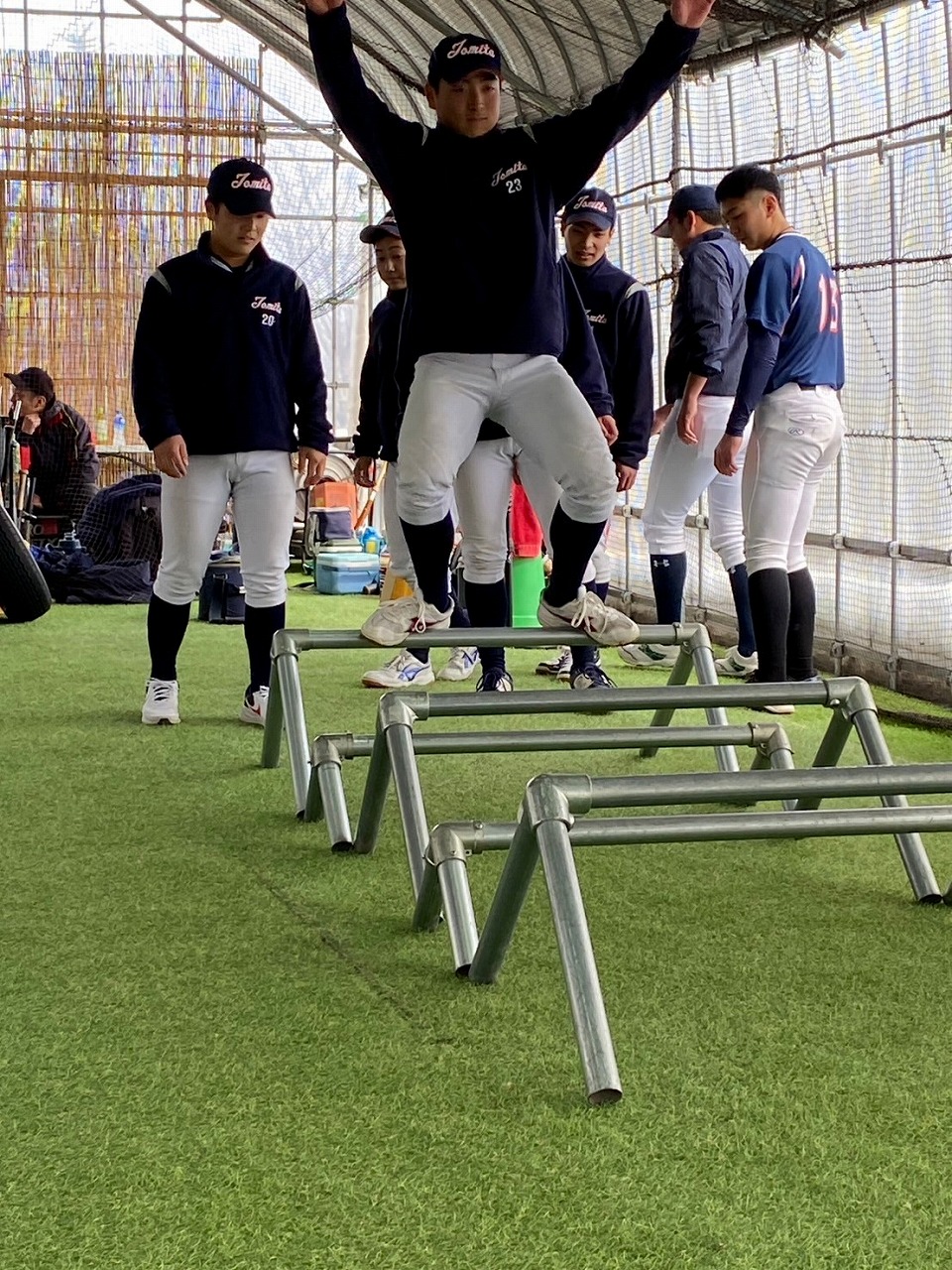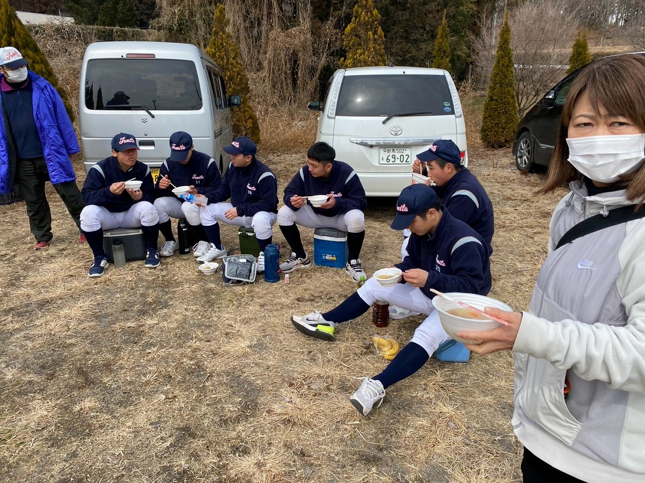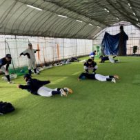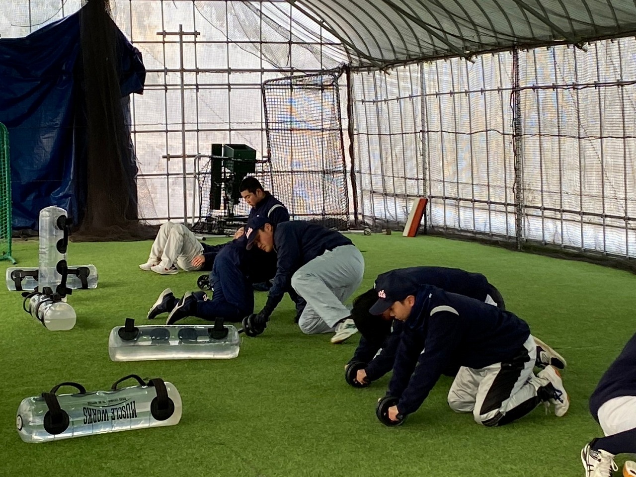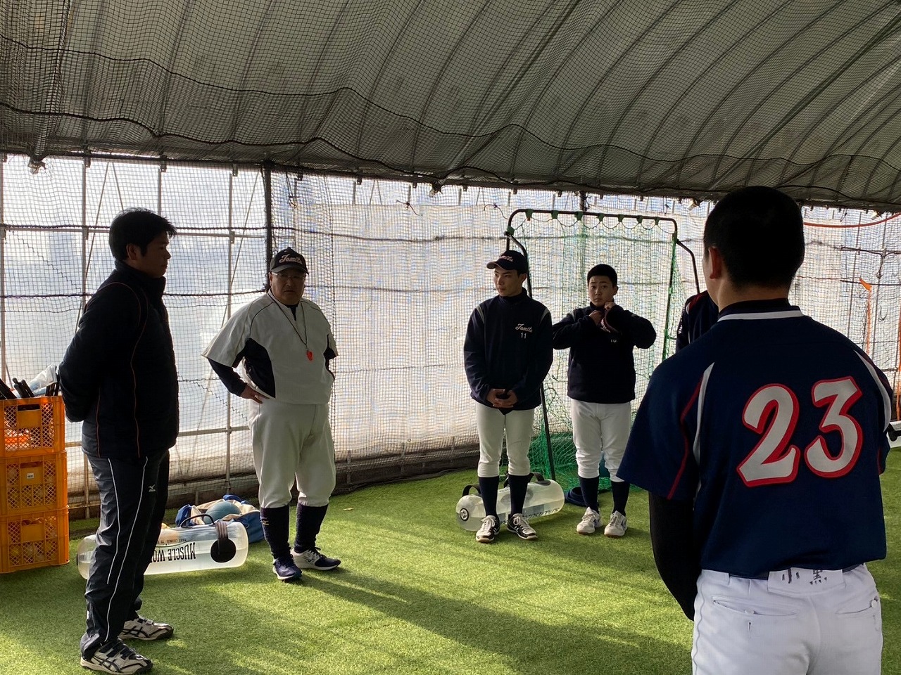 本日の練習は、赤城Gのコンディション不良のため急遽榛東村にある室内練習場をお借りして行いました。また、塾長のお知り合いで、NTT東日本でプレーしていた白石さんに指導に来ていただきました。ポジションは捕手ということで、キャッチャーの塾生にとっては特別に貴重な経験になったことと思います。また、バッティングもみて頂き、各人の修正点を細かく指導して頂きました。ピッチャー陣も下半身の使い方を動画でとってもらい、視聴してから修正することを繰り返しました。とても質の高い練習になったと思います。常日頃から「マイナスイメージの言葉を使ってはダメ!ポジティブな発言をしよう!」と塾長から教えられています。股関節の柔軟で足を大きく開かれる際、塾生「ギャー!きもちいいー!」途中から急に寒くなり、保護者の方が作って下さった温かいスープでみんなほっこり。練習も残すところあと1回。来週はグランド良ければいいな。