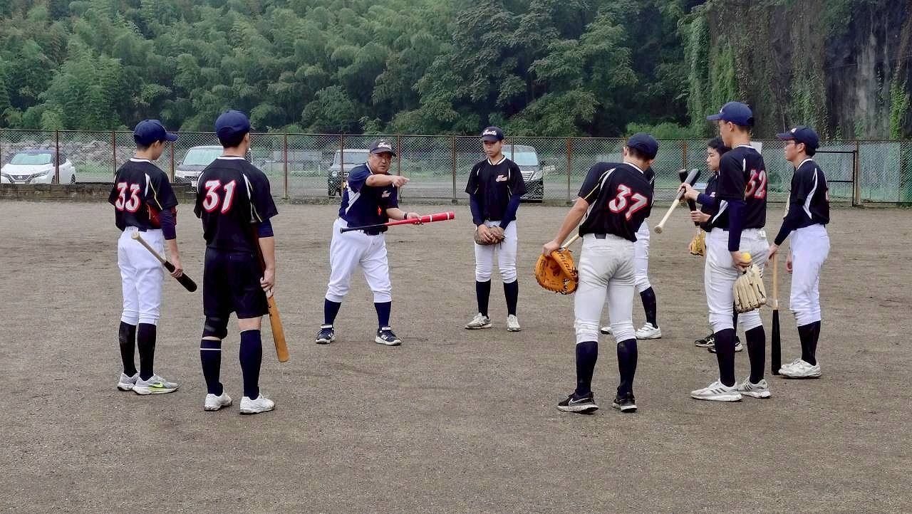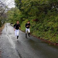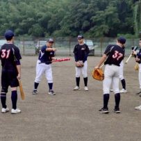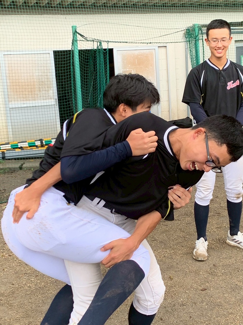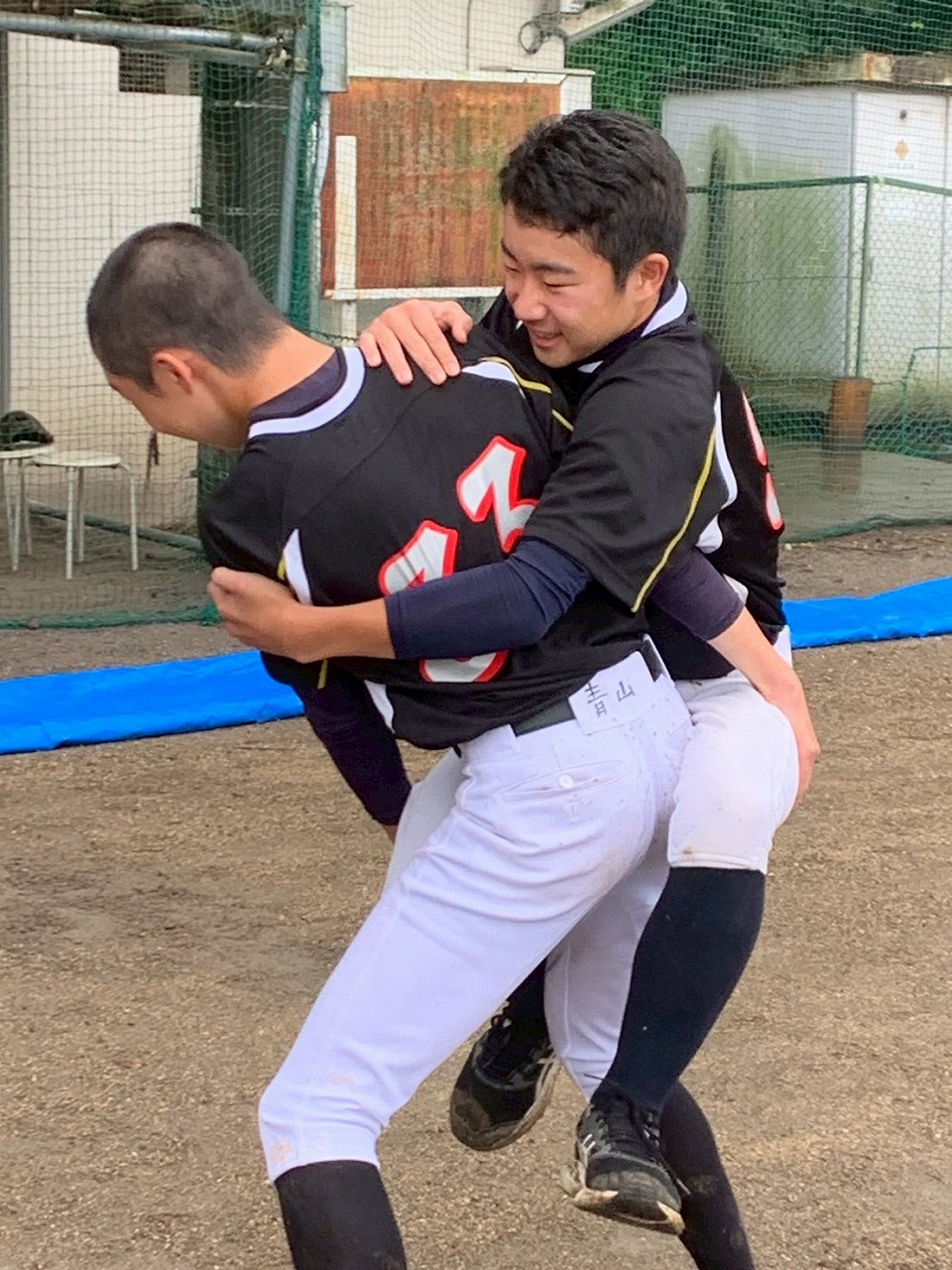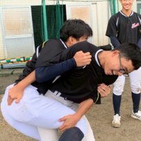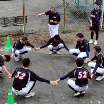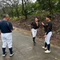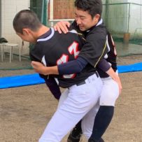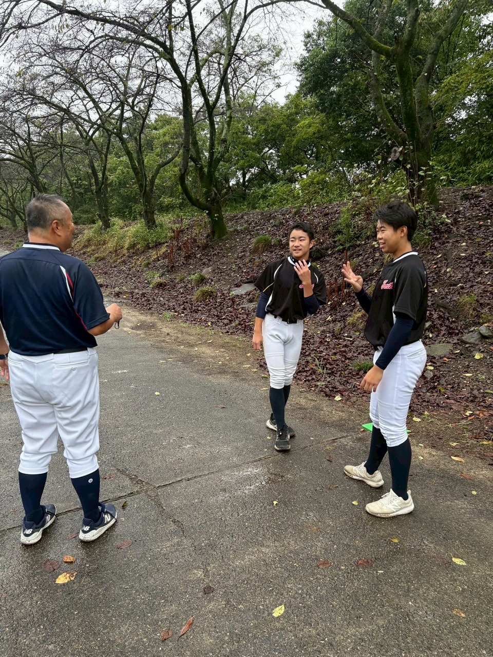 さぁ本日のメニューは⁉ まずは少年野球の塁間で作ったダイヤモンドをメディシンボールを持ってカニさん歩き。曲げている膝よりお尻を下げて横歩き。よいしょ、よいしょ、カニさん歩き。だんだん腰の位置が高くなってく・・・また本日も筋肉痛確定です!お次は~20か所の素振り。どんな球にも対応できるように体に覚えさせることが大事。家での素振りも塾長からのアドバイスを意識して振ってくれているはず…。『継続は力なり』。さてさてお次は~坂道を使ってのランメニュー。アップダウンのあるコースを1周又は2周走り切る前に相手を捕まえる!とても脚力の付く追いかけっこです(笑) これもまた楽しそう(*´▽`*) 雨でぬれた髪をなびかせながら走るイケメンたちよ*がんばれ‼ そしてラストは②人組になって体の周りをグルっと1周回るという、人間観覧車(笑)。『最後まで諦めない‼』←これ一番大事‼あとはコツを掴んでグルっと回ってハイッ出来た!見事に全員クリアしました。