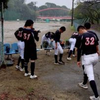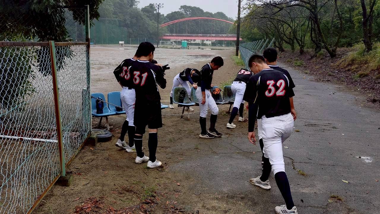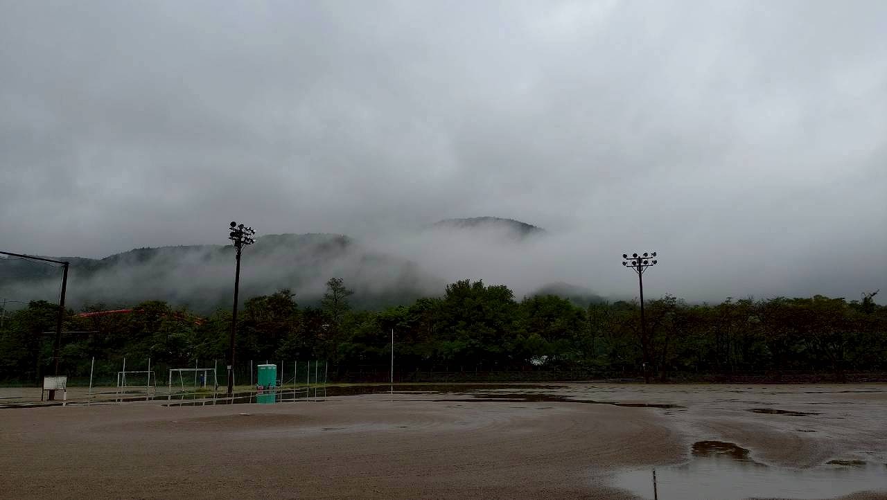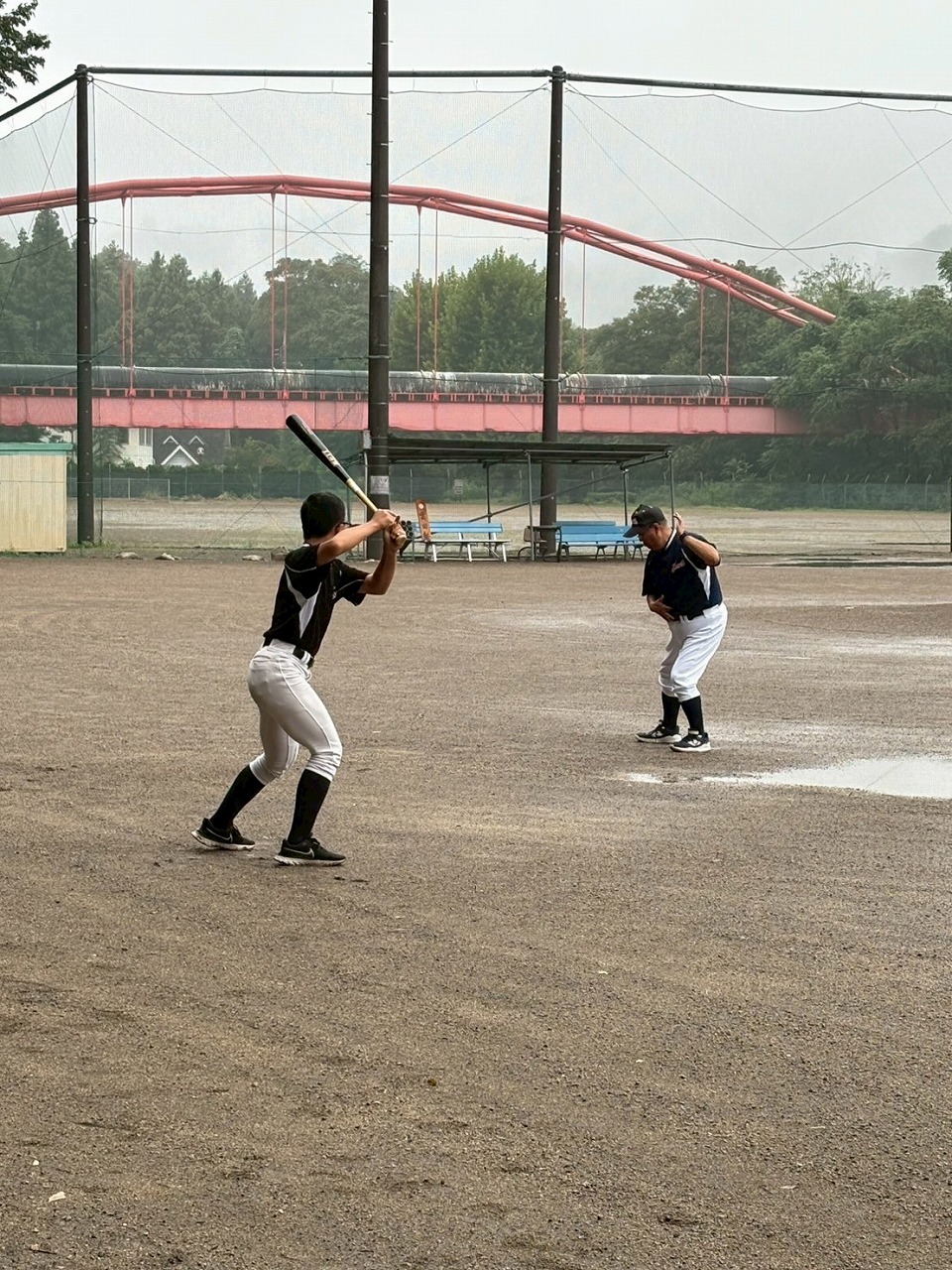 金曜日からの雨。自宅を出発(AM5:00まだ暗い)グラウンドに向かうにつれ雨脚が強くなる;この天候の中でもやるのかなと不安な気持ちを抑えつつ到着。