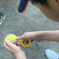 そして、初めての巻き巻き作業。ボールをビニールテープで巻く、塩ビパイプにグリップを巻く…初めての作業に試行錯誤しながら行いました。