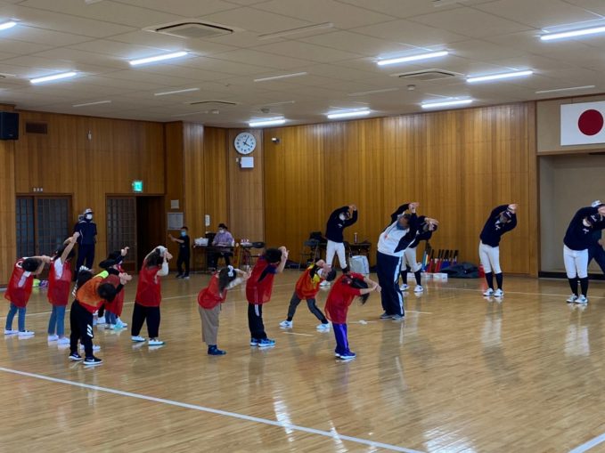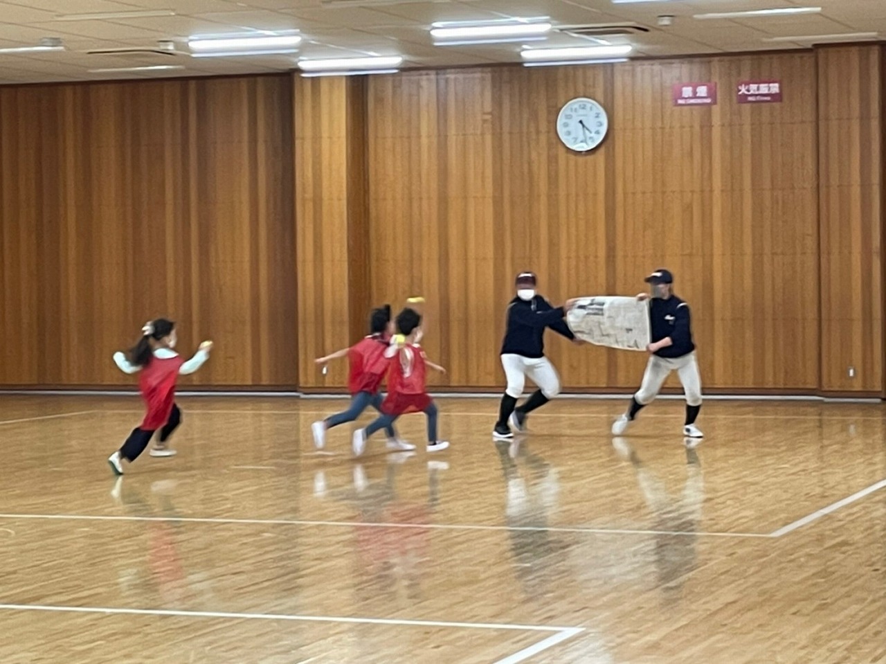 ちびっこメジャー塾で4人の塾生が手伝いをしました。