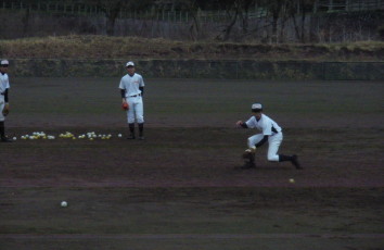 この日の練習は、まだ暗い早朝からのスタートで、前商生が練習に来る前にグラウンドを使わせていただきました。 3グループに分かれて個人ノック、罰ゲームはエラー数×10の三拍子と朝から気合いが入りました。 続く外周ランニングでは、タイムを計測。この後、20種で体を温め、砂場でのリレー(片足リレー)を開始し…