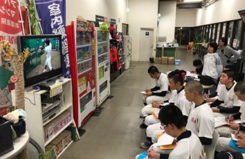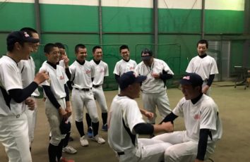 ファーストでの水曜練習。前橋商業高校の卒塾生が駆け付けてくれバッティングピッチャーなどを務めて、アドバイスをしてくれた。 後半では、1カ月前に撮影したバッティング練習の様子を全員で鑑賞。