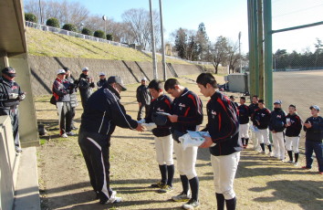 今日のグランドは日は出ているものの、山間のせいか雨が降れは霙にはなる位冷たい北風が吹き抜けていました。大分硬球にもなれて練習試合も出来、受験も控える塾生達ですが、今日は硬球ならではの出来事が2つ。大事に至らないが軟式では無いだろ!と思われることがあった。練習では風邪にも負けず、怪我にも負けずの気合い…