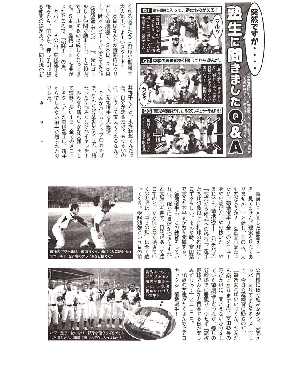 富田塾は群馬県で最も歴史のある野球塾。卒業した塾生は、県内外の強豪校へ進学。その後プロ野球へと進んだ者もいる。